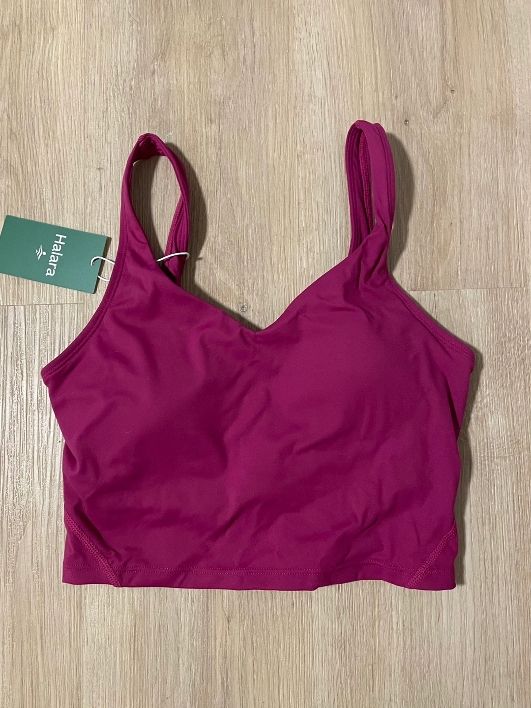 Magenta Halara yoga top. Brand new with tags. Removable padding.