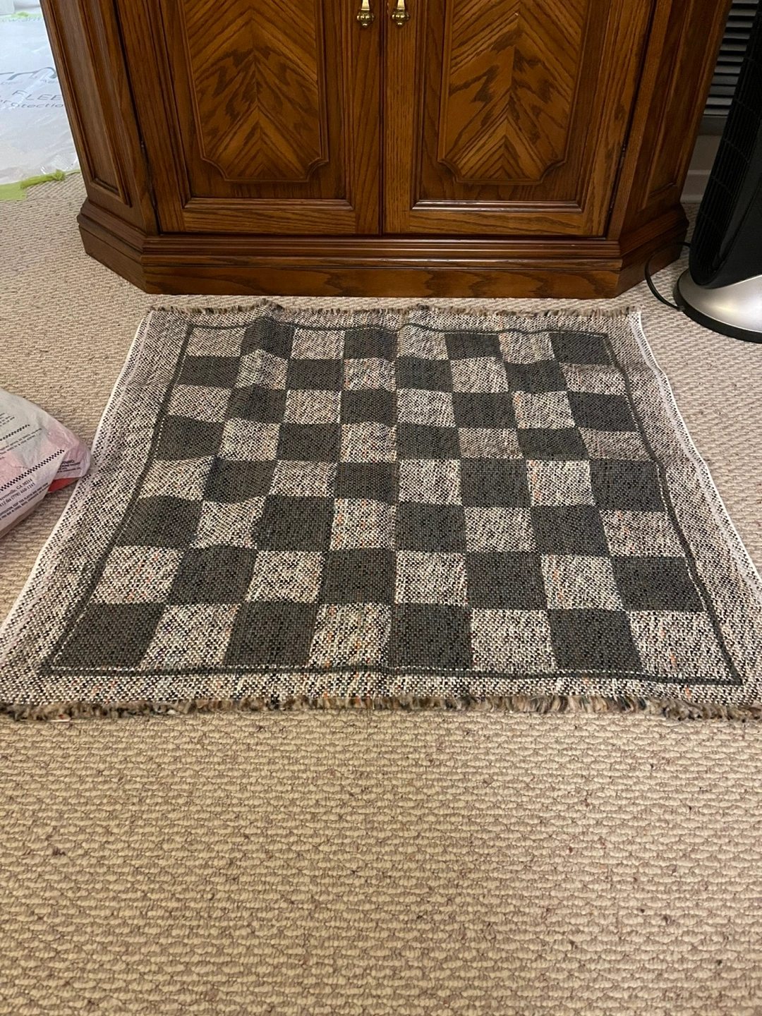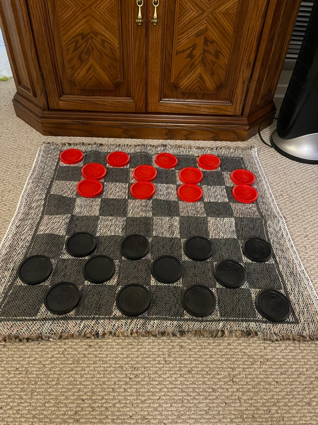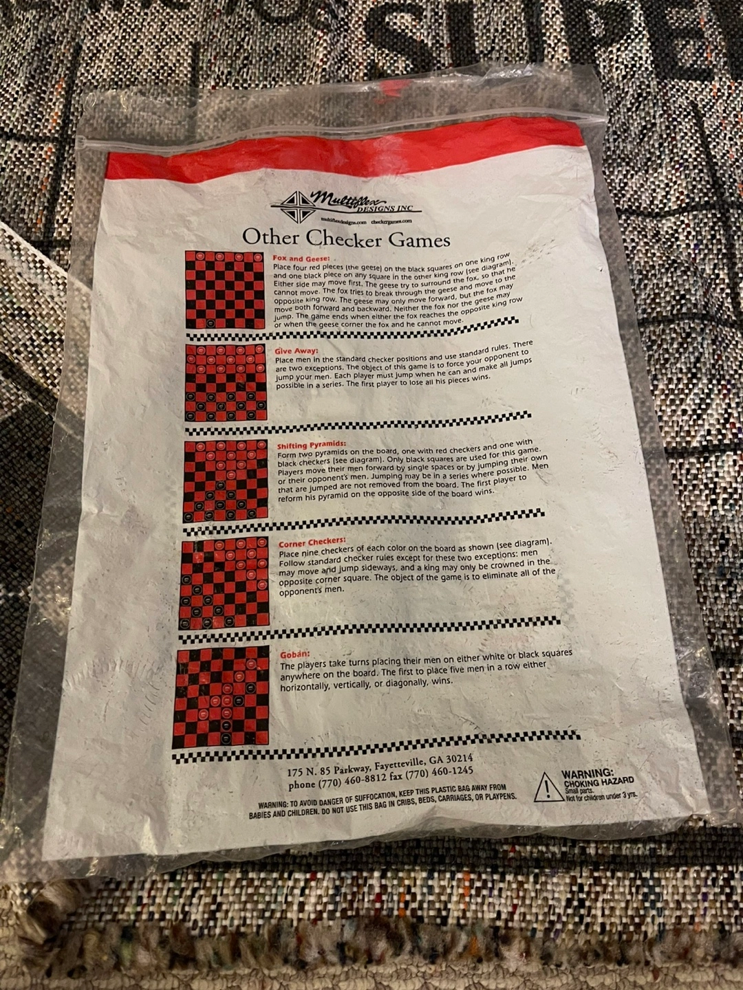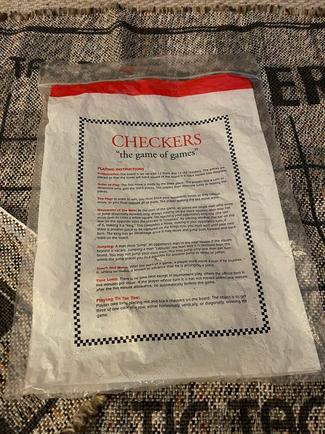 98Checkers game. Includes playing board and 24 playing pieces. Board is fabric. Pieces are plastic. Vintage condition.