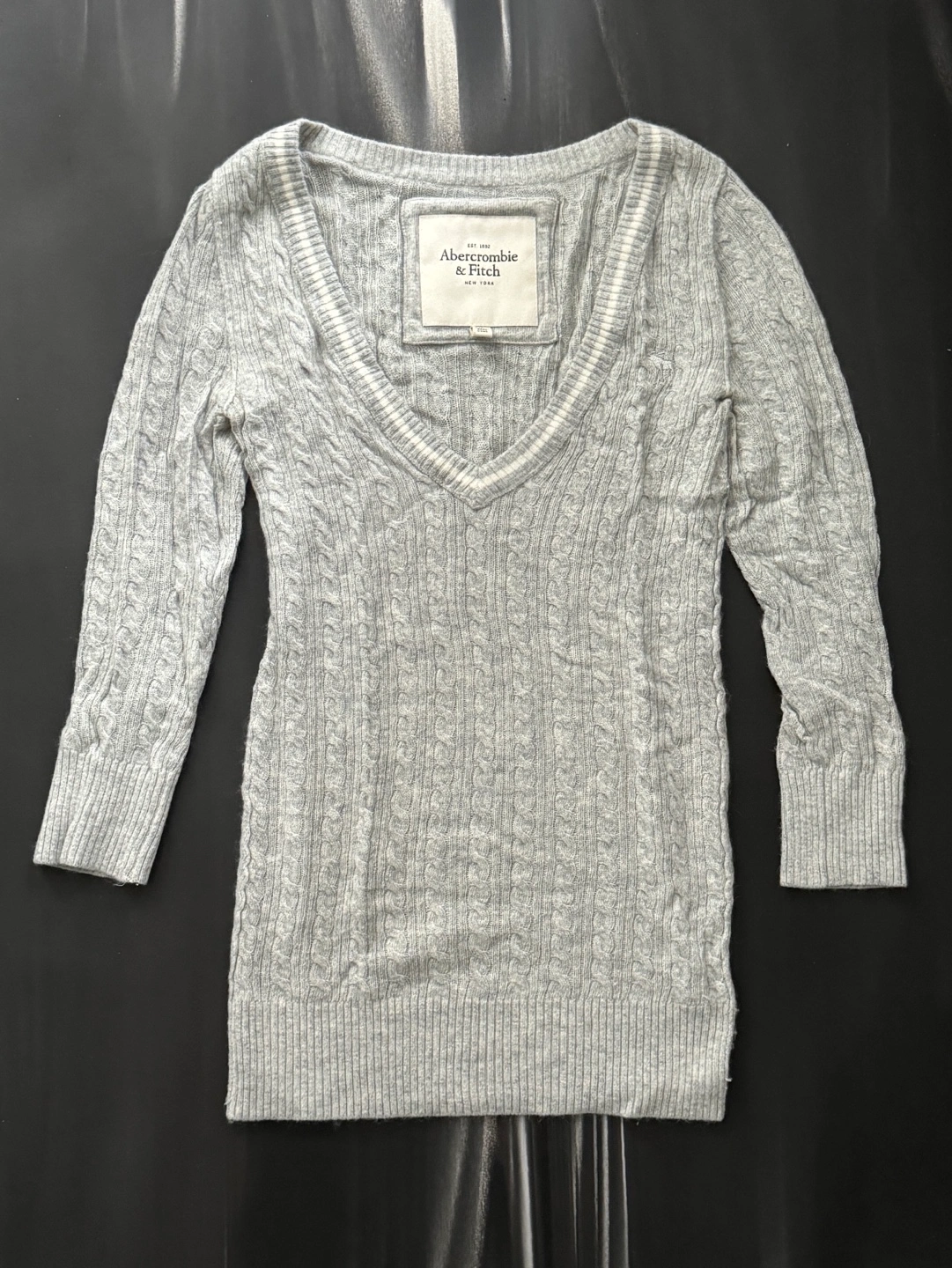 Abercrombie & Fitch Grey Cable Knit V-Neck Sweater