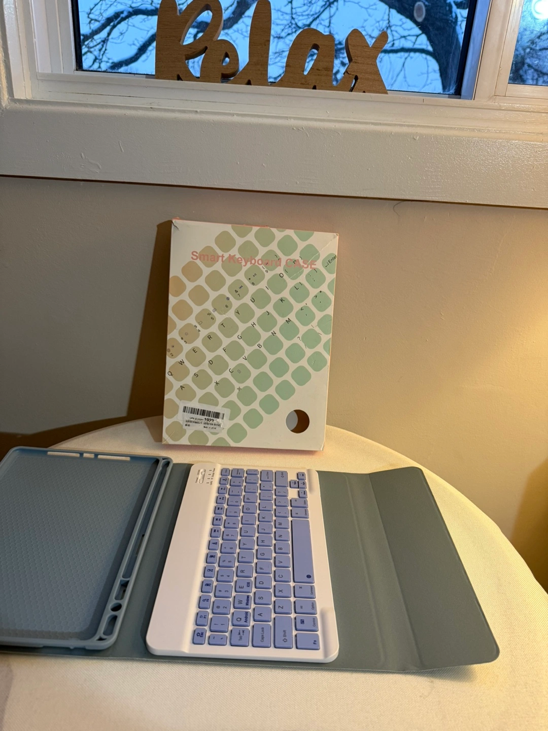 Buy & SellBluetooth Keyboard Case for TabletBluetooth Keyboard Case for Tablet$35Wireless keyboard with case. Pad 9th, 8th, 7th Generation 10.2 inches Includes charging cable. Grey and purple colour scheme. Compatible with tablets.WHERE TO MEETDora CrescentView MapSELLERverifiedJehanCummings21810 reviews0 chats·0 favorites·14 viewsSEND CHAT TO SELLERHi Jehan! I’m interested in your listing.Hi Jehan! I’m interested in your listing.Get the Karrot app to chatSign In to chat