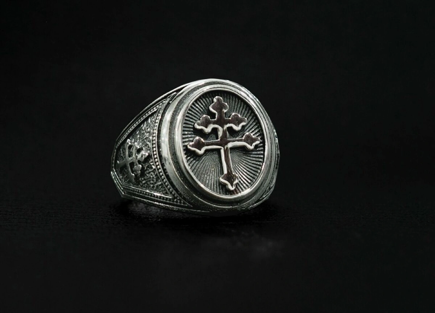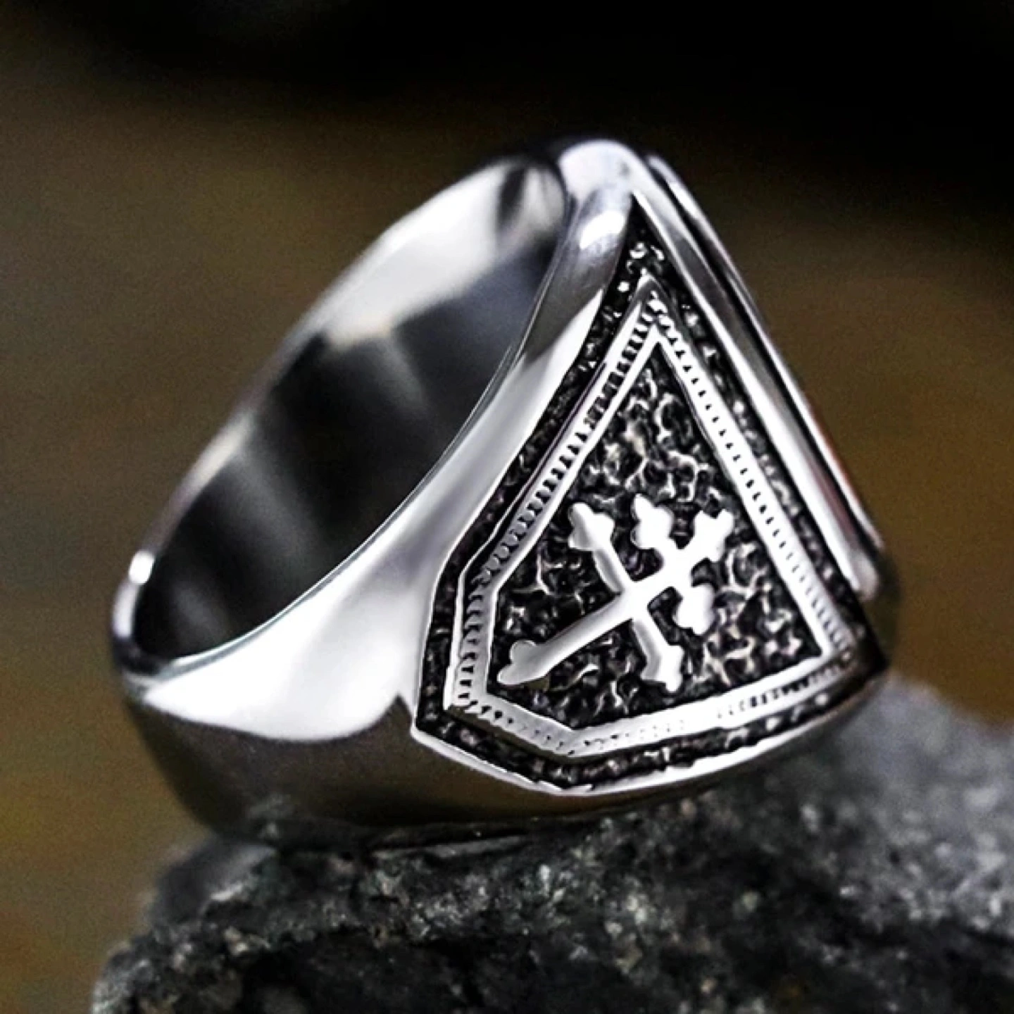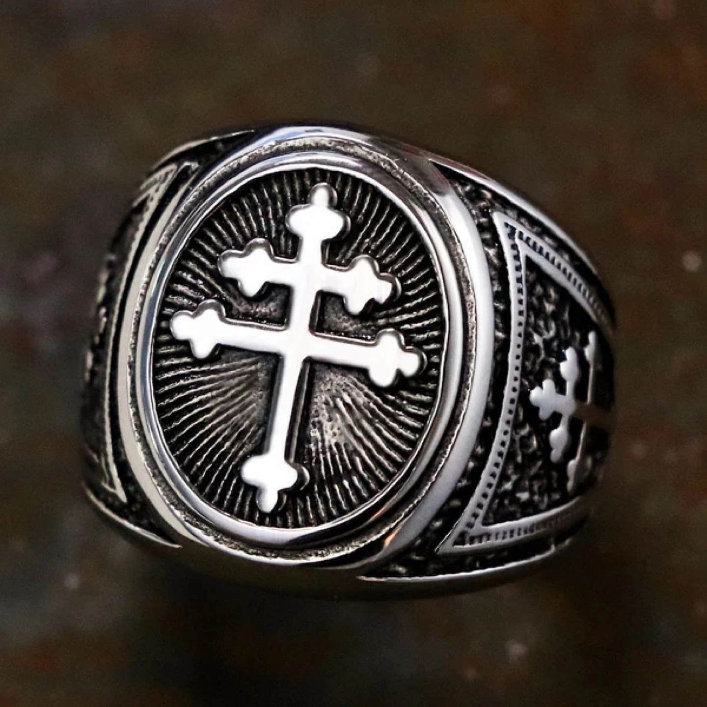 Heavyweight stainless steel men's ring. Features an Occitan cross. Detailed etching and a bold design. Excellent statement piece.