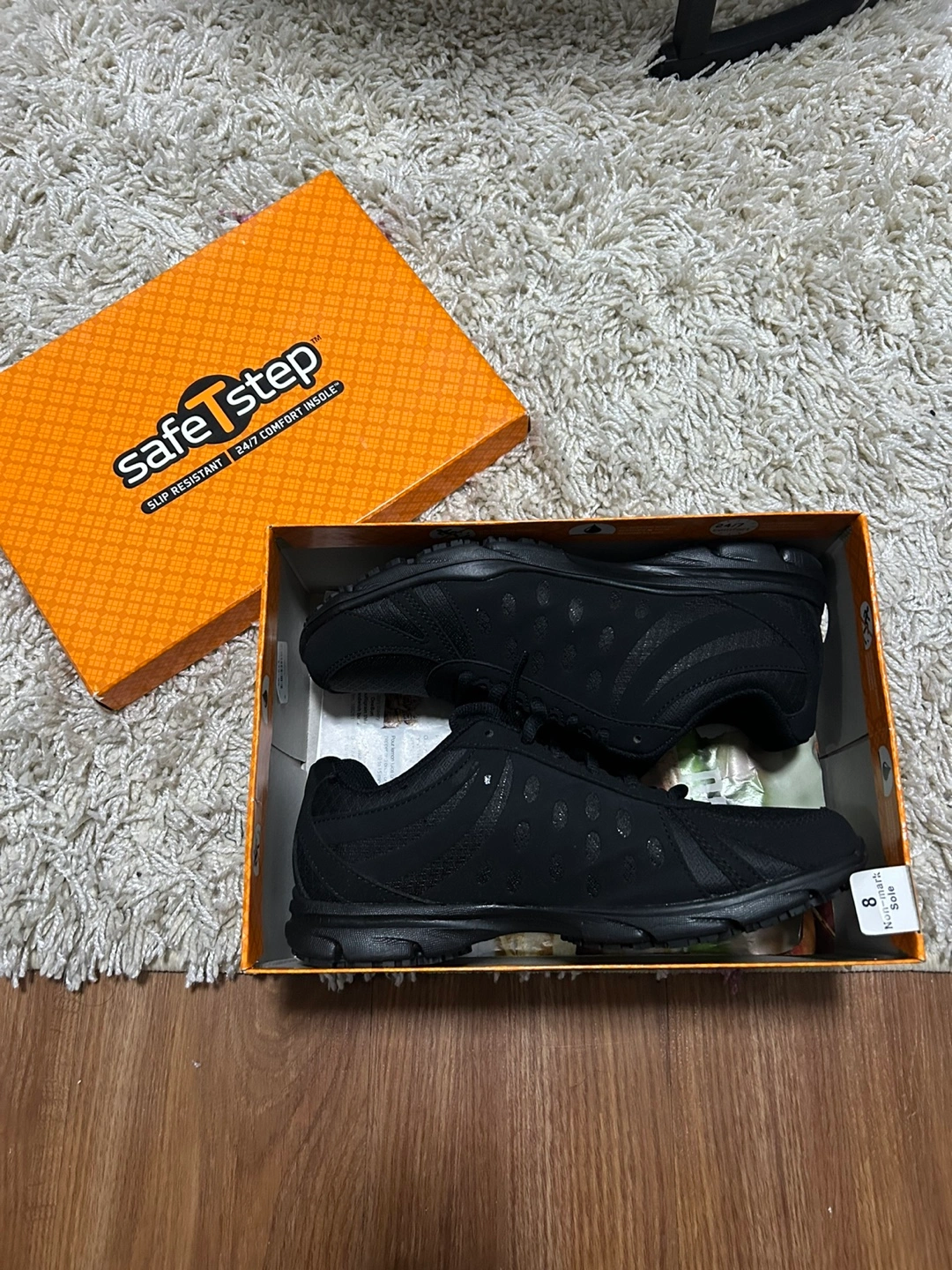 Women's black slip-resistant shoes. Size 8. SafeTStep brand. 24/7 comfort insole.