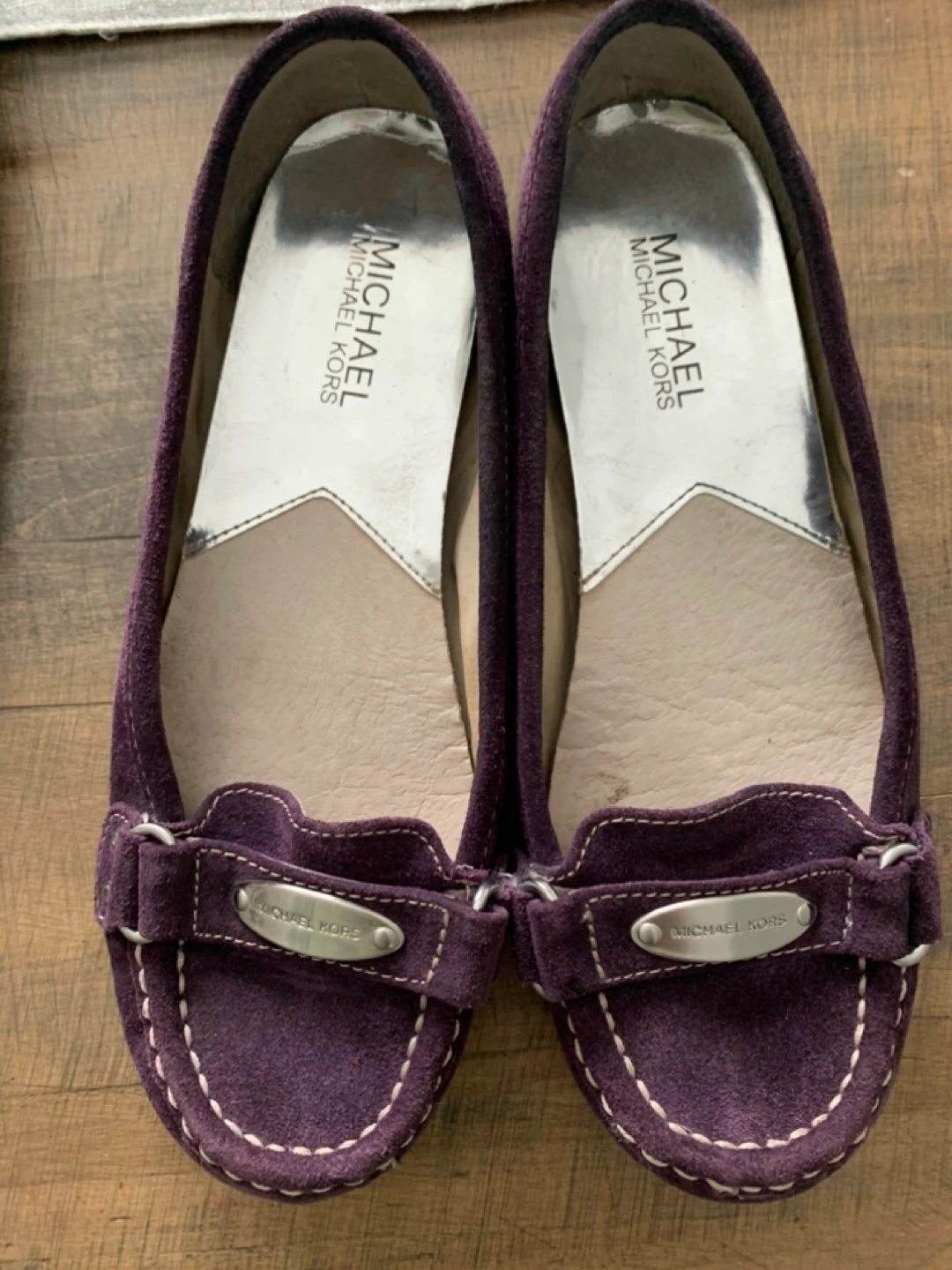 Women's purple suede loafers. Size 7 - Slight wear visible. Great condition- Metal Michael Kors logo on strap.