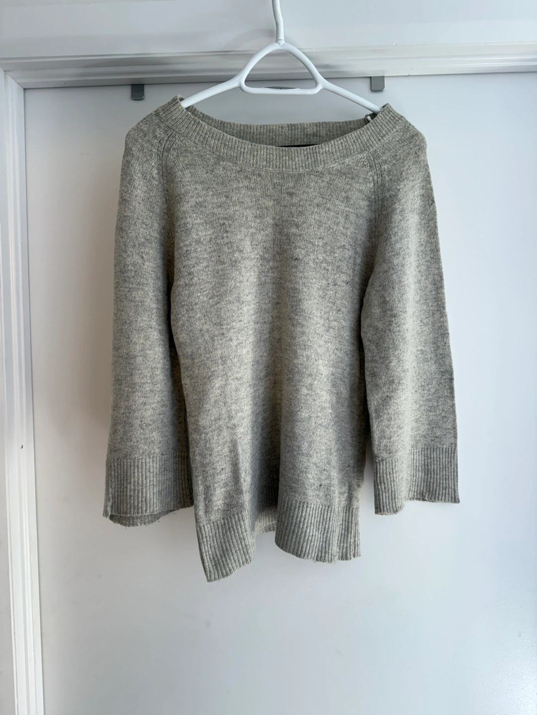 Lightweight grey sweater. Size extra small. Three-quarter sleeves, soft material.