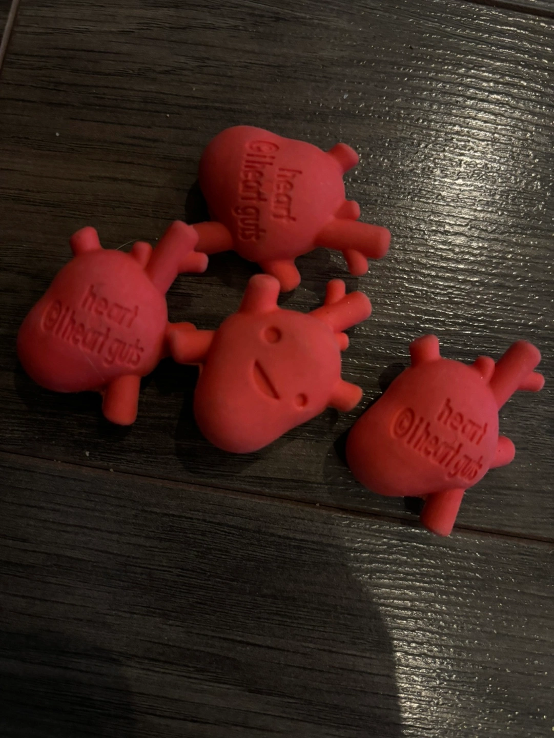 1000+Set of four anatomical heart erasers. Red colour. Heart Guts branding.