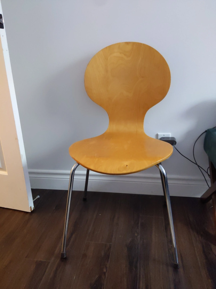 single chair that we don't need. in good used condition - a few paint spots that could easily be scraped off, might need refinishing around the edges. sturdy and really cute.