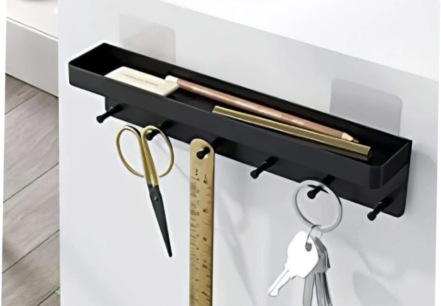 New Wall-mounted key holder. Features a tray and multiple hooks. Great for entryways, kitchens, or offices. Organize keys, mail, and small items.