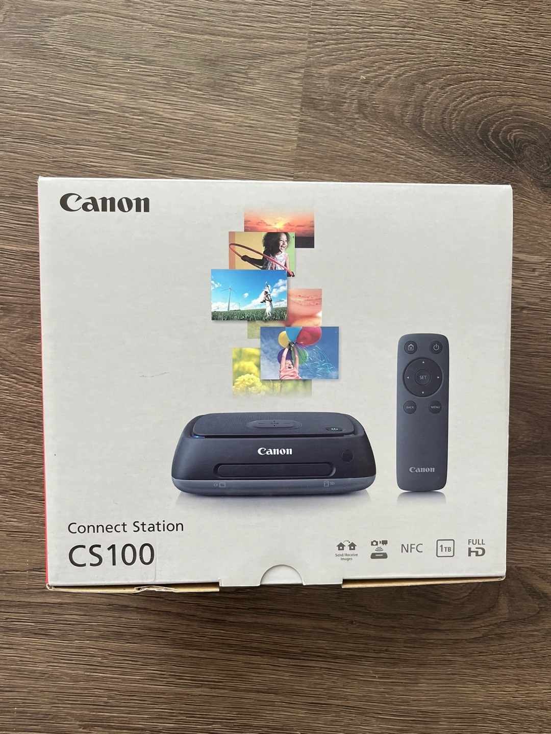 New, unopened Canon Connect Station CS100. Includes remote. Full HD. NFC enabled. Allows easy transfer and viewing of photos and videos from compatible devices.