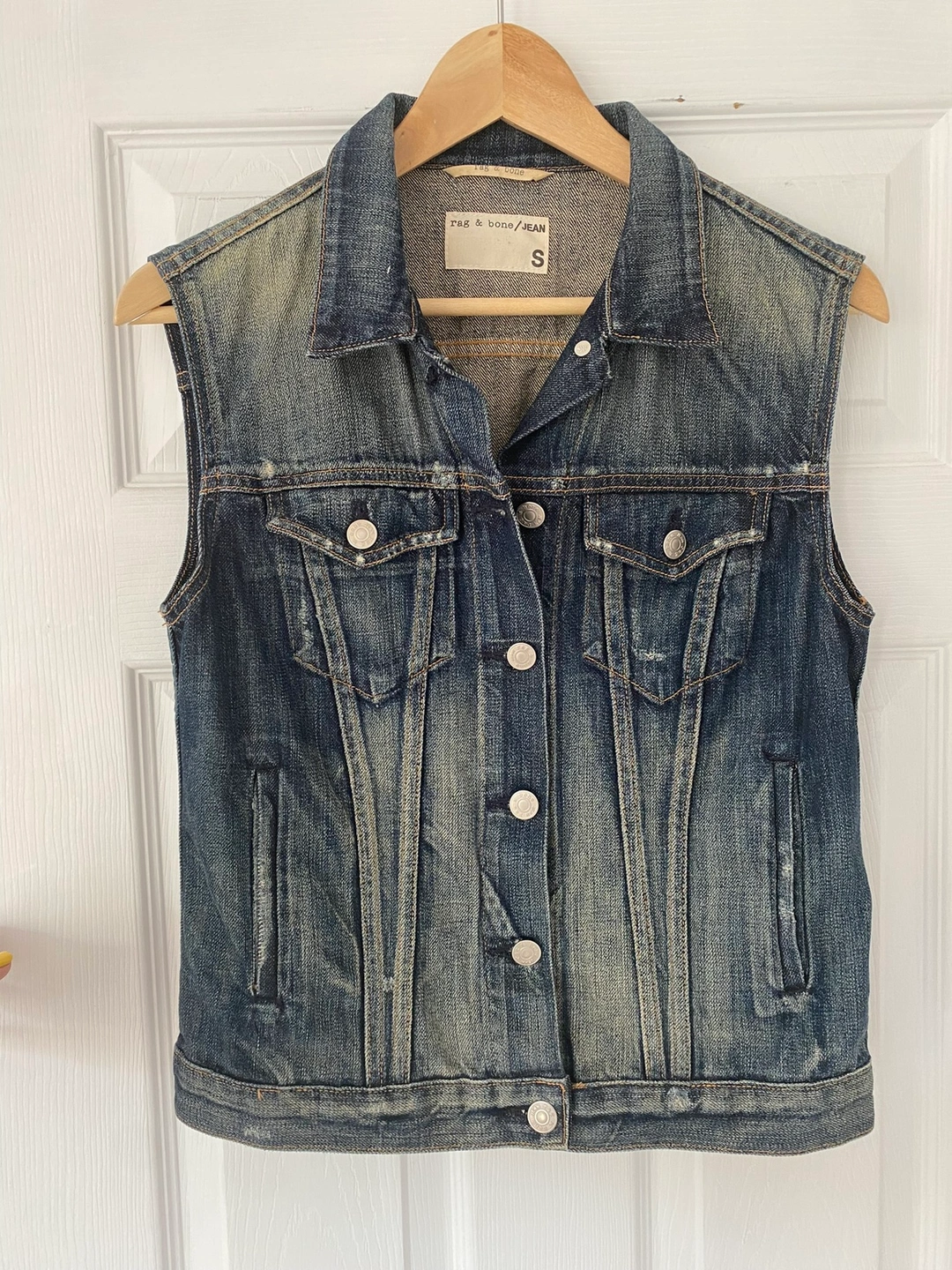 395Rag & Bone Denim Vest Sleeveless. Size small. Classic style. Button closure. Distressed denim look.
