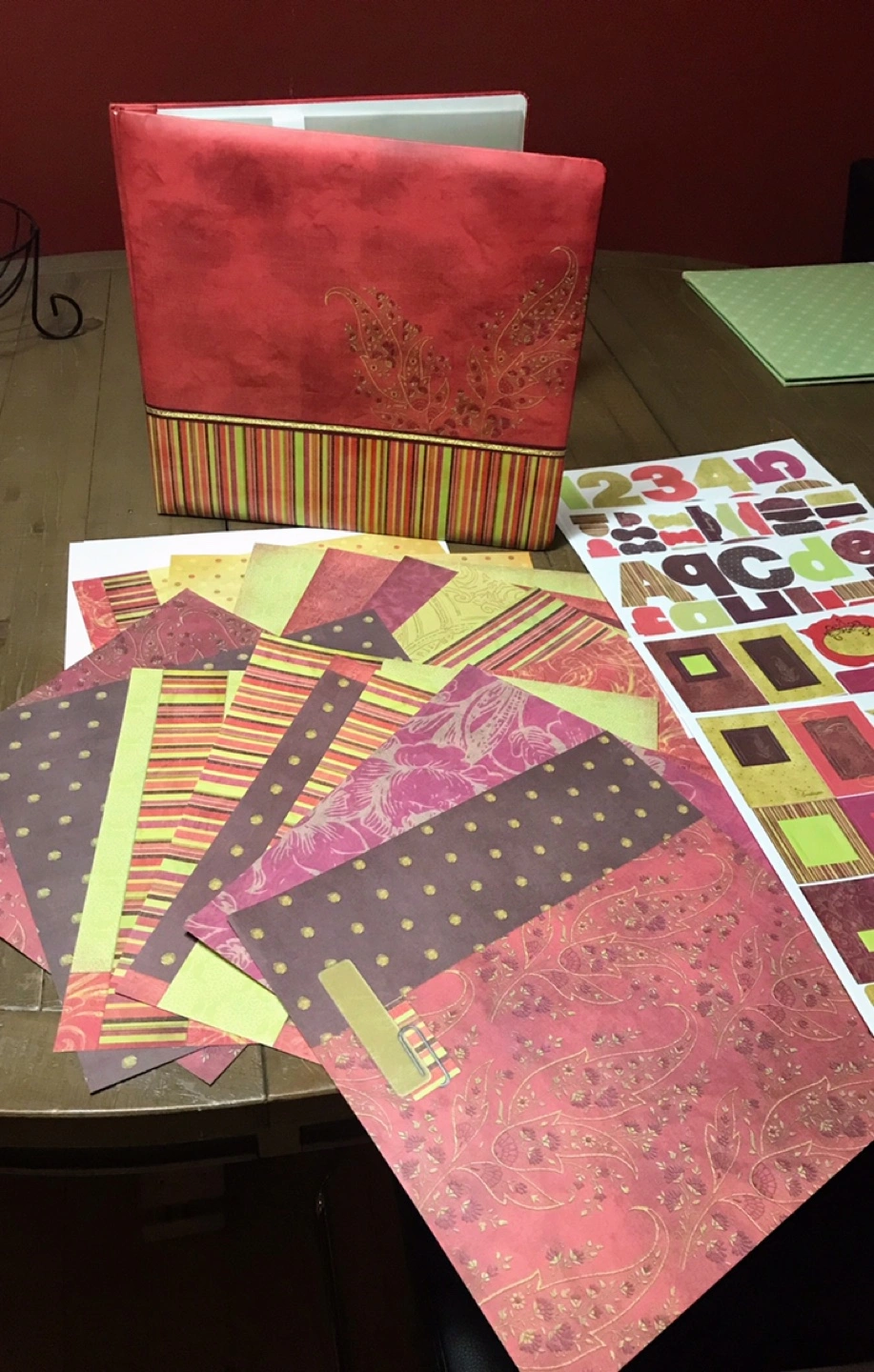 130Large 12”x12” scrapbooking kit. Includes coordinating patterned paper, die cuts, and scrapbook. Perfect for crafting projects.