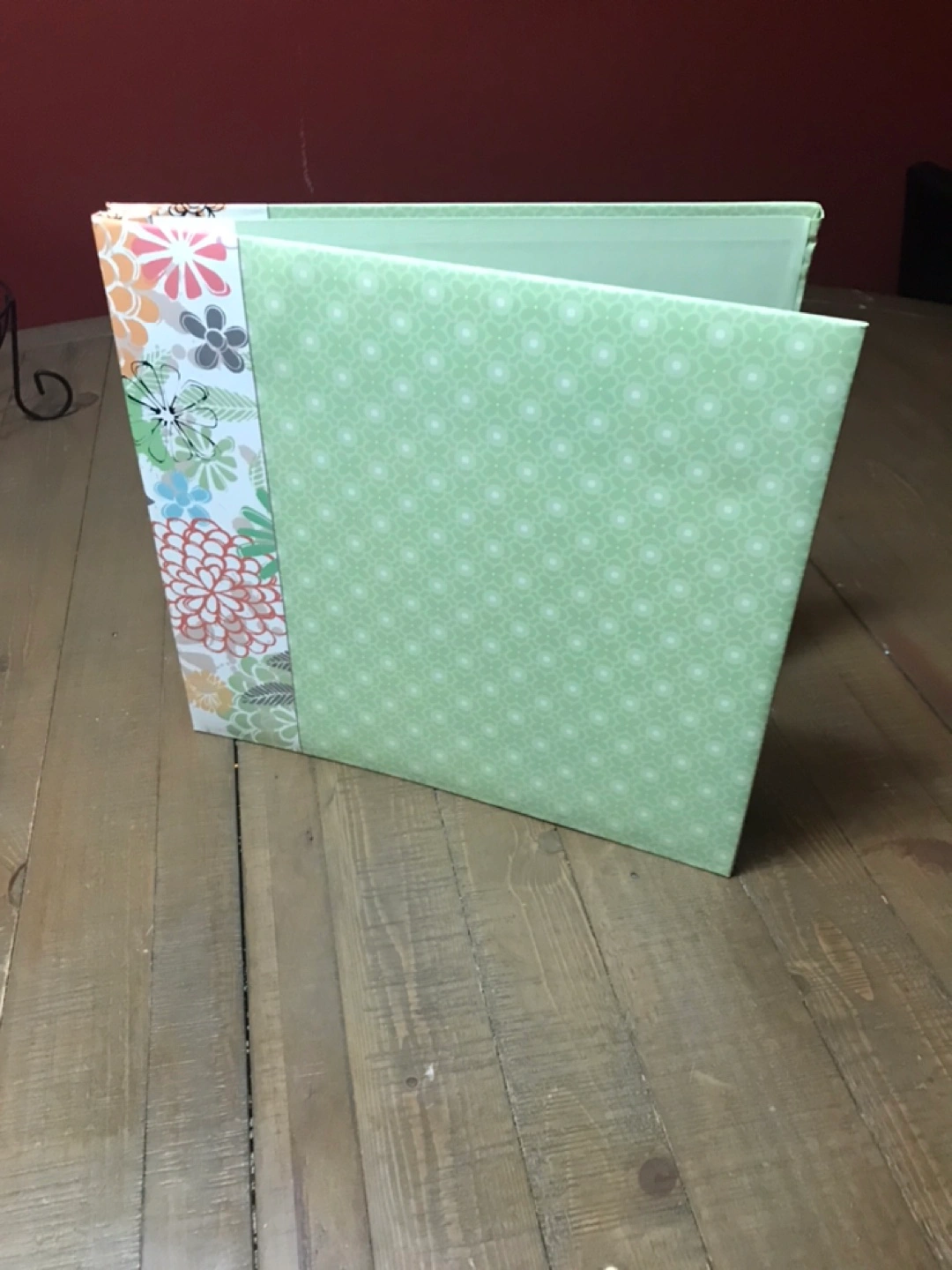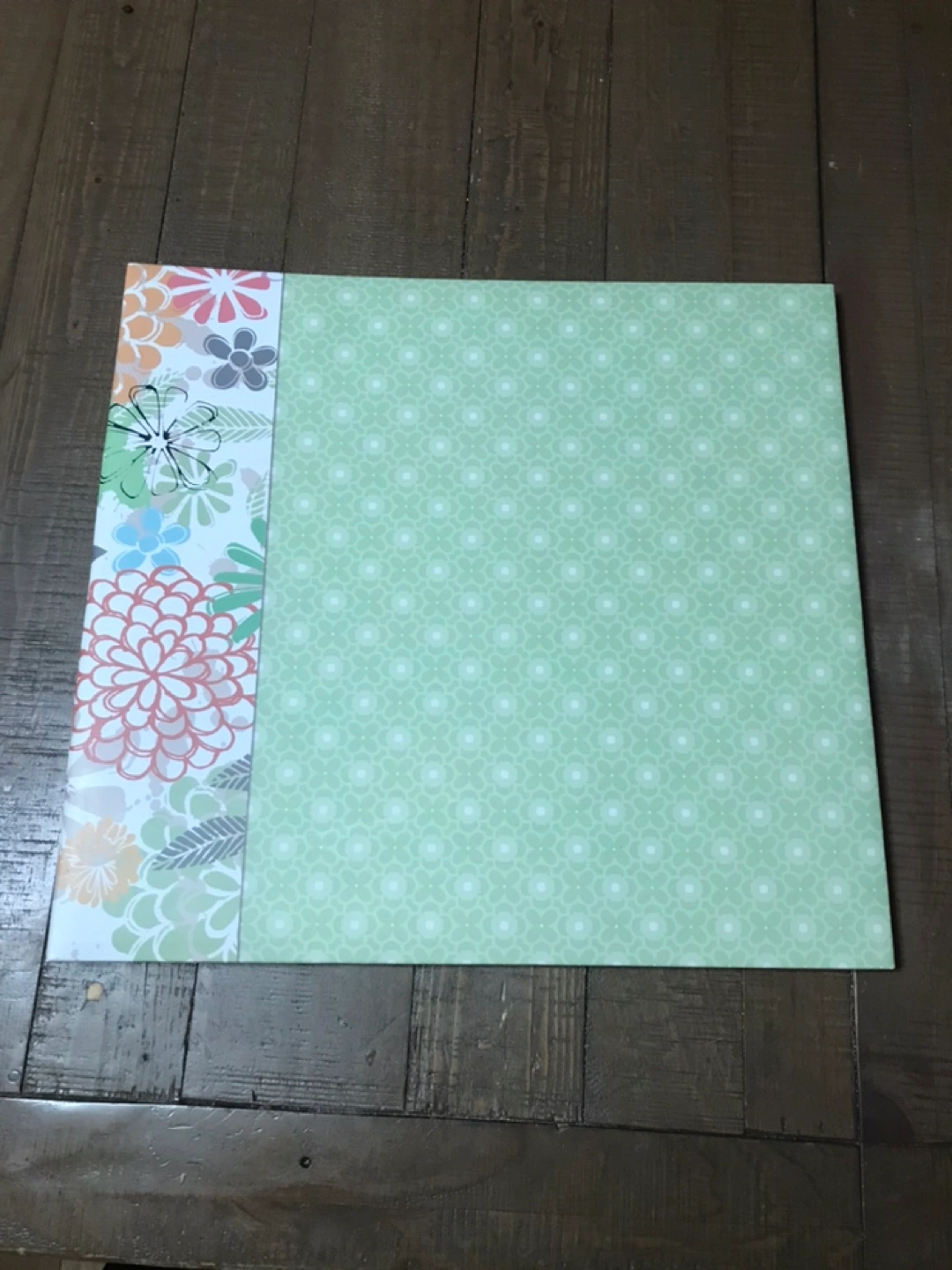 130Beautiful 12”x12” floral scrapbook album. Mint green cover with colourful floral design. Perfect for storing photos and mementos. Durable construction. Great condition.
