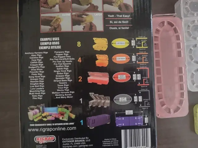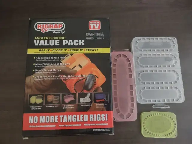 RIGRAP rig / lure holders. Compact plastic devices designed to store a range of rigs incluring live bait rigs, single or multi-hook rigs, an a variety of jigs, Selling the whole box. See the pictures for reference.