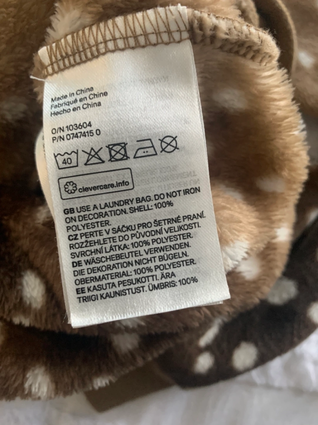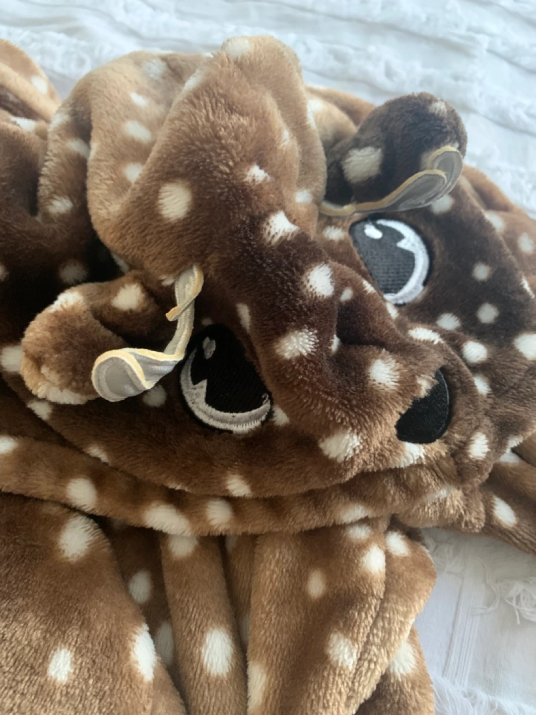 a super soft and cozy H&M deer-themed plush hoodie – perfect for lounging, staying warm, or as a fun costume piece! Details: ✔️ Brand: H&M ✔️ Size: EUR 170 / US M (CA 16Y+) ✔️ Material: 100% polyester – ultra-soft and warm ✔️ Color: Brown with white spots (deer design) ✔️ Features: • Adorable deer face hood with ears and antlers • Super soft plush fabric for extra warmth • Front kangaroo pocket for convenience • Ribbed cuffs and hem for a snug fit