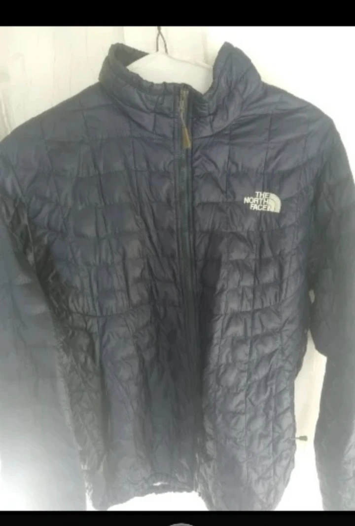 Men's dark blue quilted jacket. Full zip closure. Long sleeves. Good condition.