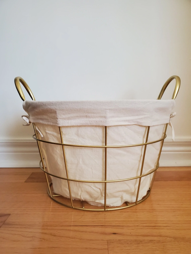 Gold Metal Wire Storage Basket with Removable Fabric Liner