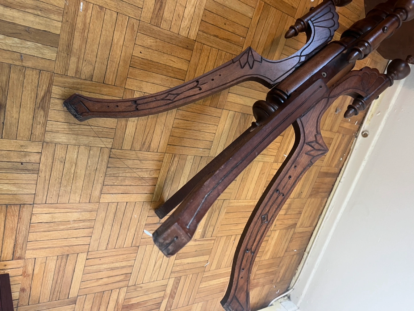 Solid wood construction (possibly mahogany or walnut) with a beautiful patina.