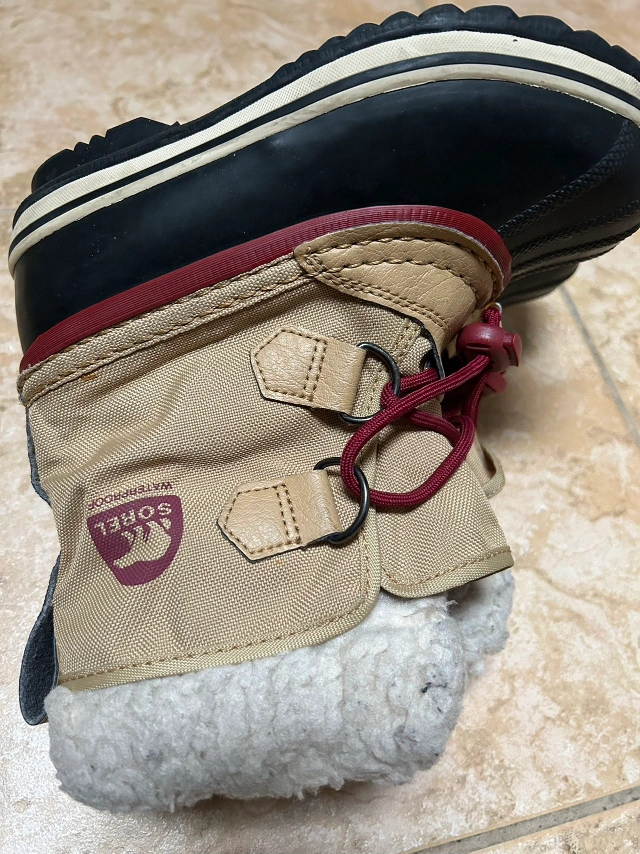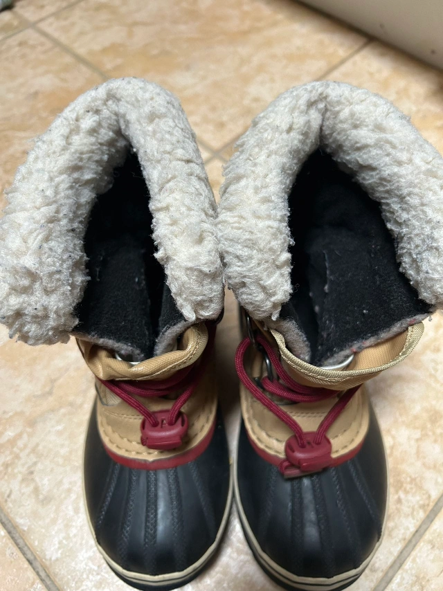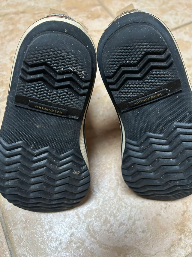 31Waterproof winter boots. Beige and navy blue. Fleece lining. Good condition. Size 2. Bought for 60$.
