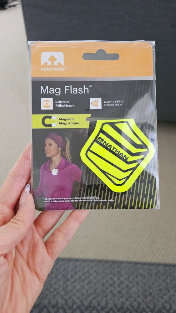 40New Nathan Mag Flash safety device. Magnetic clip-on design. Attaches easily to clothing and gear. Reflective. 1200 ft visibility. Safety Yellow.