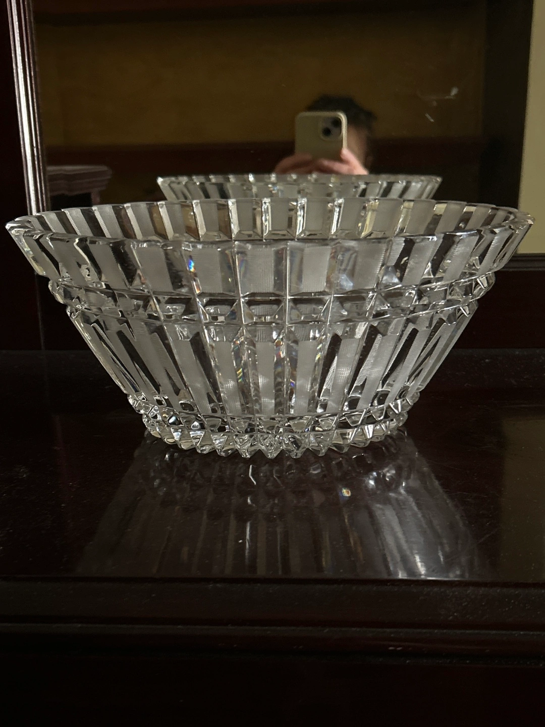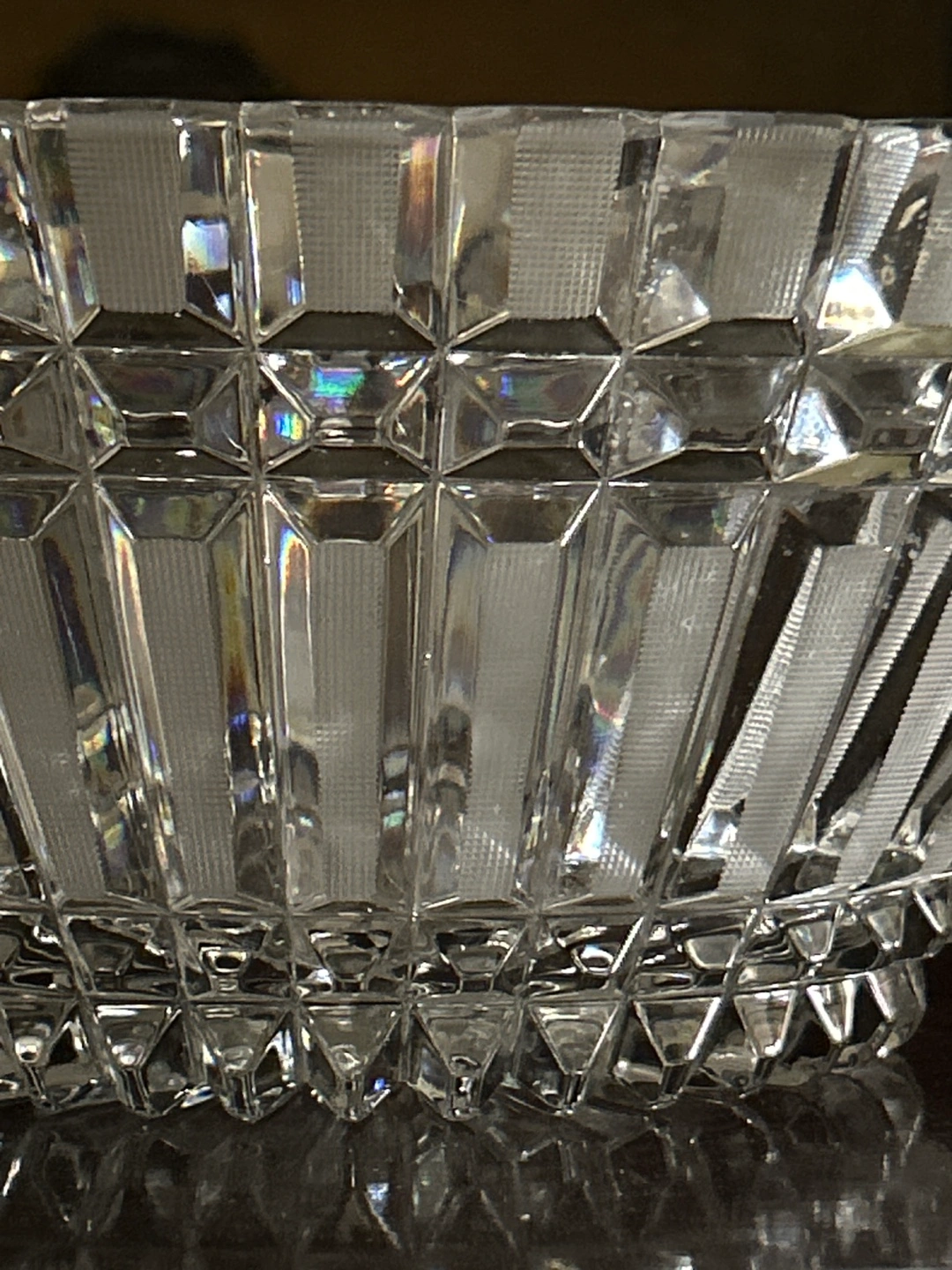 Beautiful crystal glass bowl with panel cross hatch Intricate cut design.