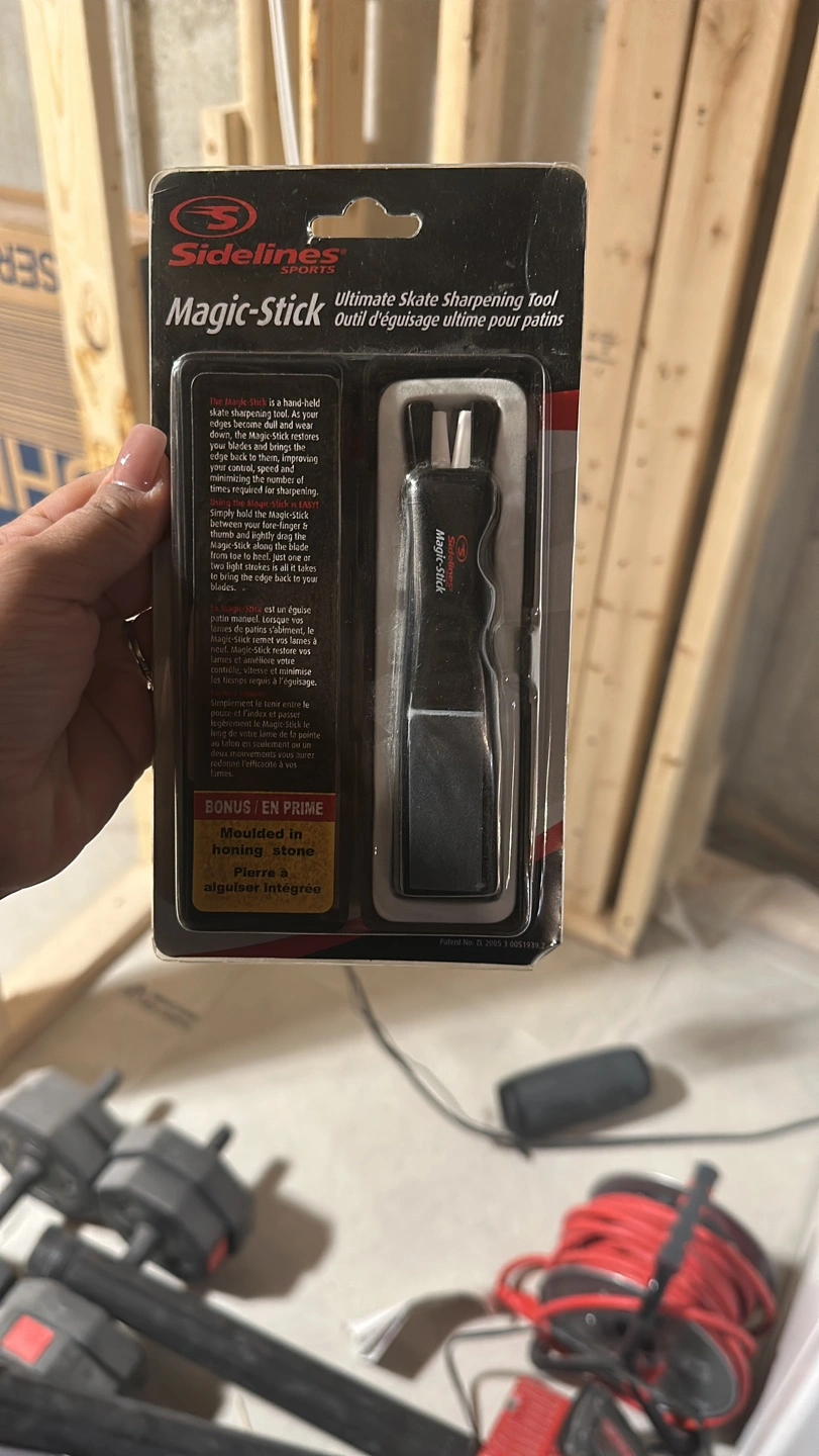Hand-held skate sharpening tool. Restores worn edges, improving control and speed. Easy to use; simply hold between fingers and lightly drag along blade.