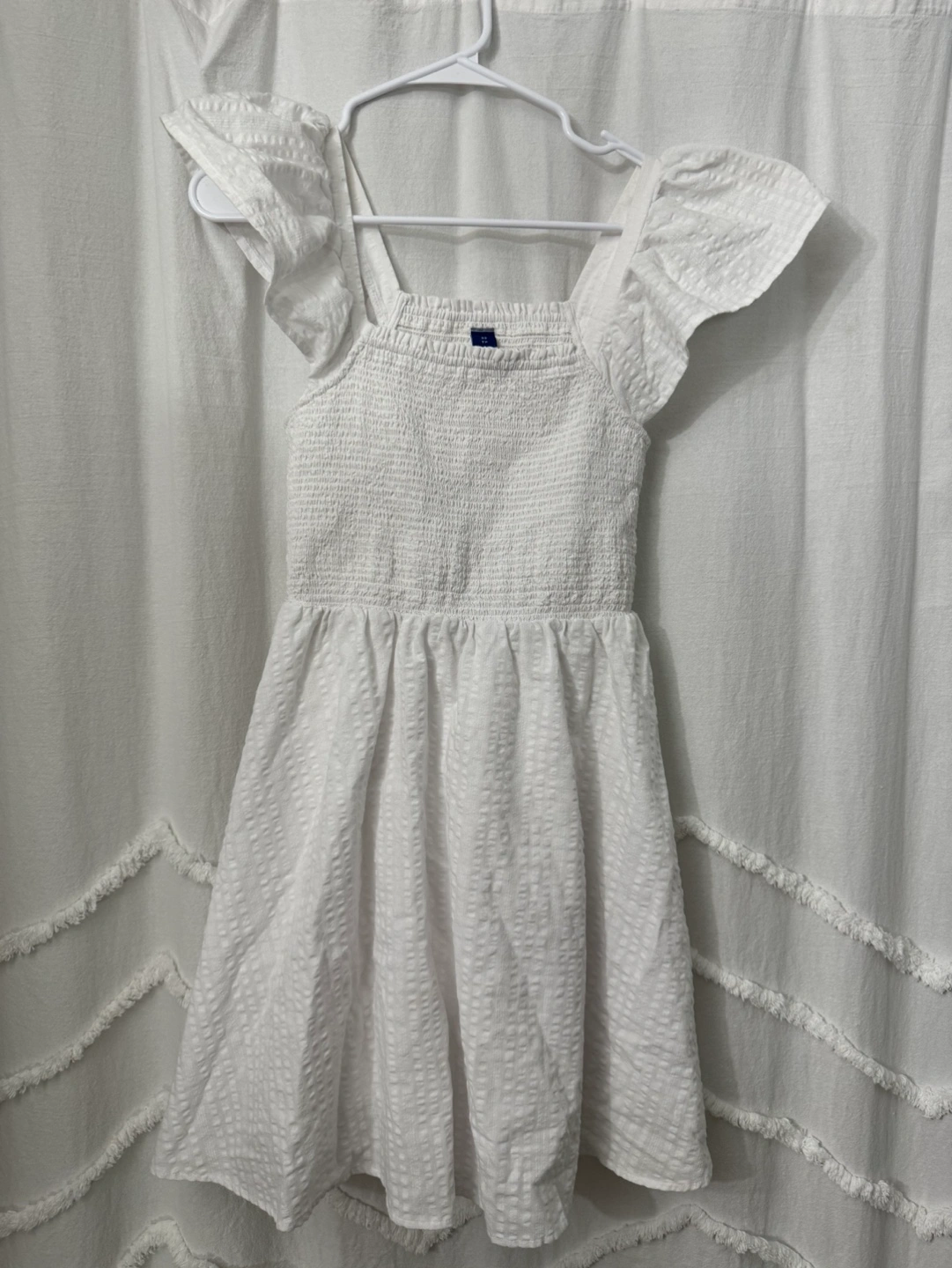 Adorable white eyelet dress. Size XS. Features flutter sleeves and smocked bodice. Perfect for summer. I wore this for my bachelorette party!