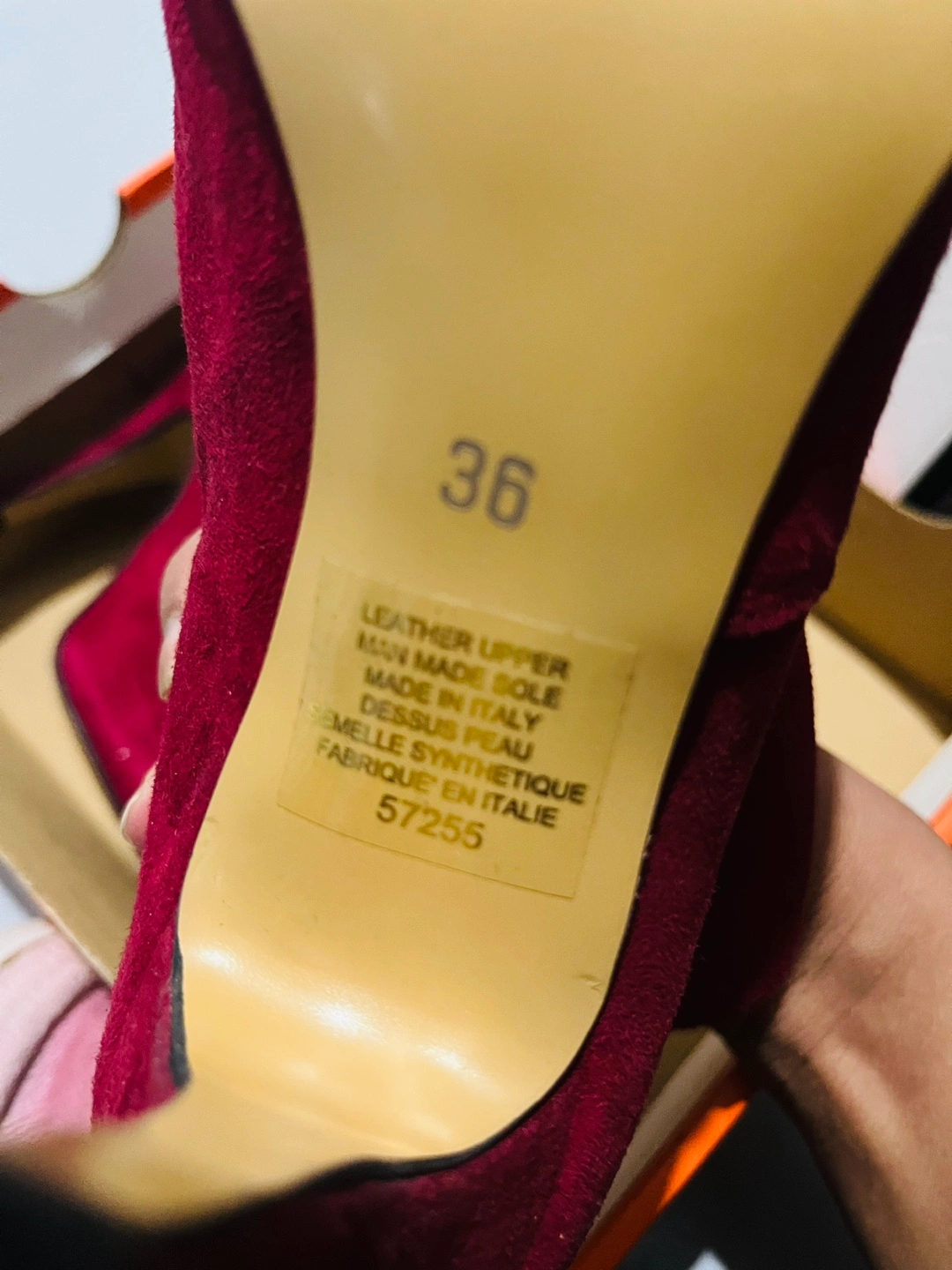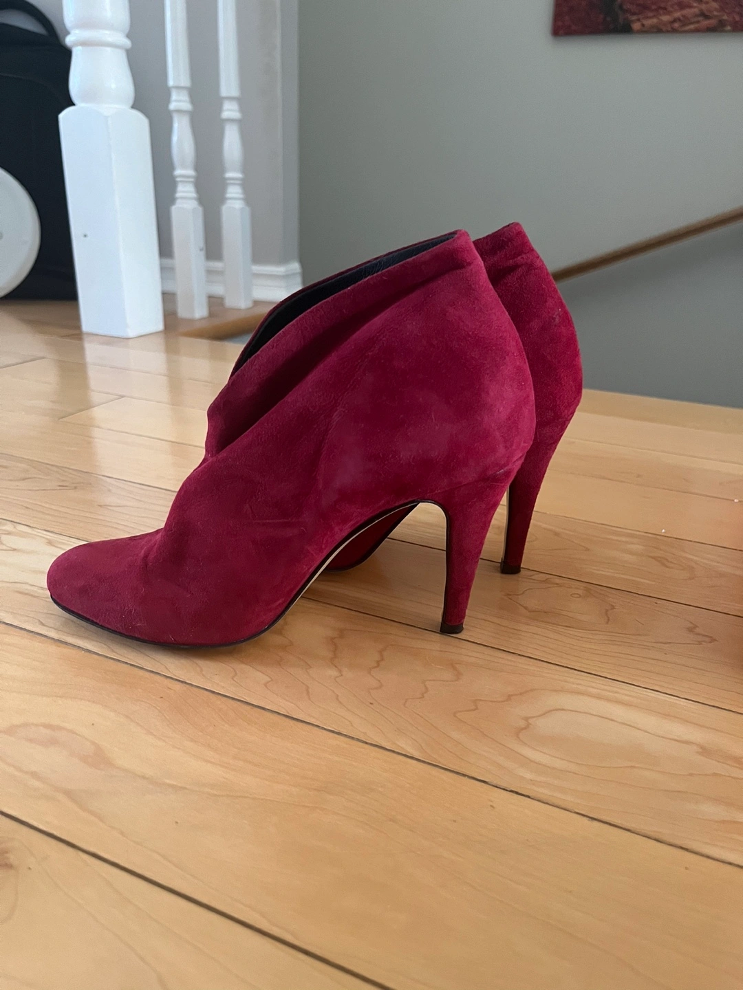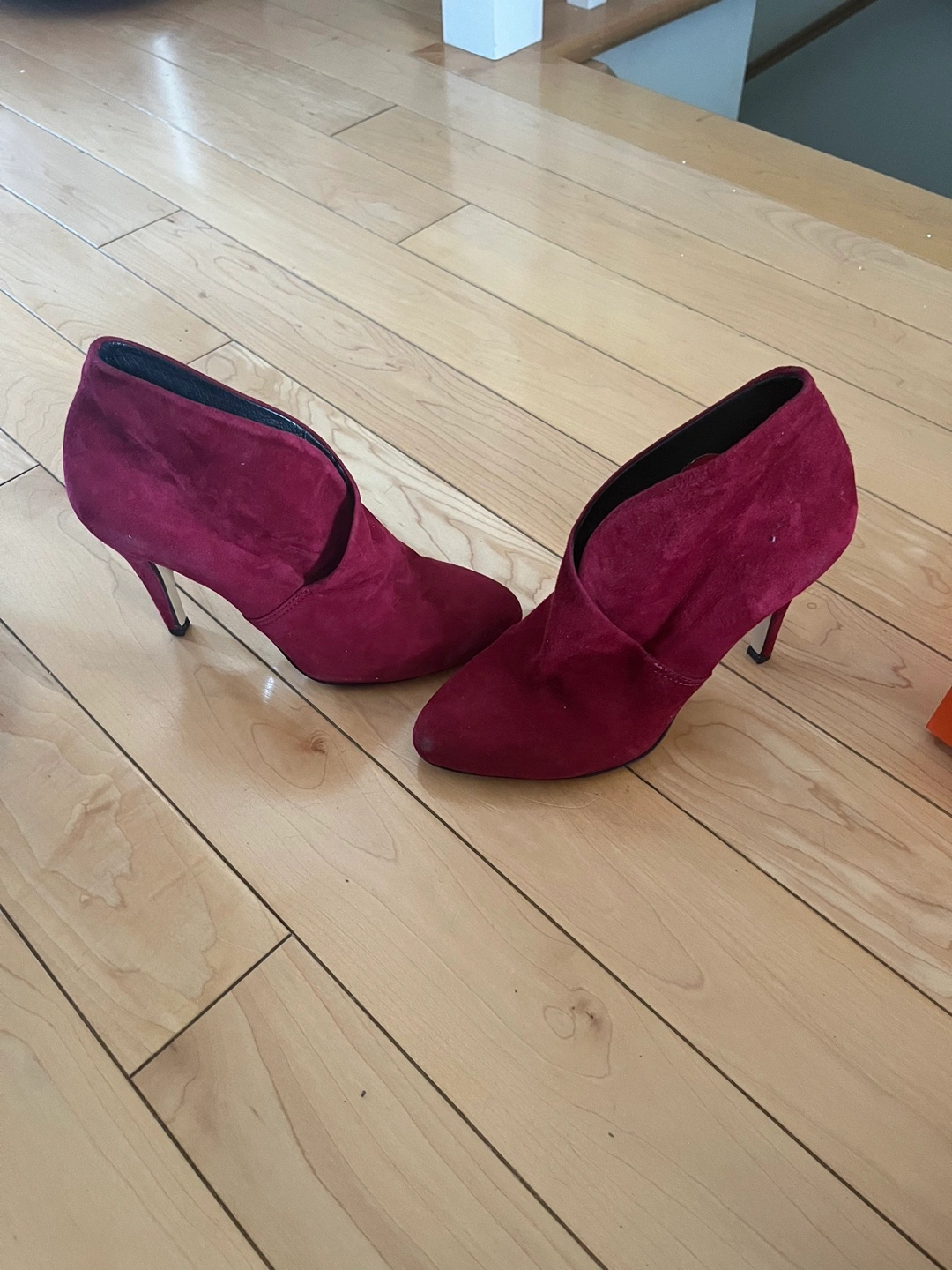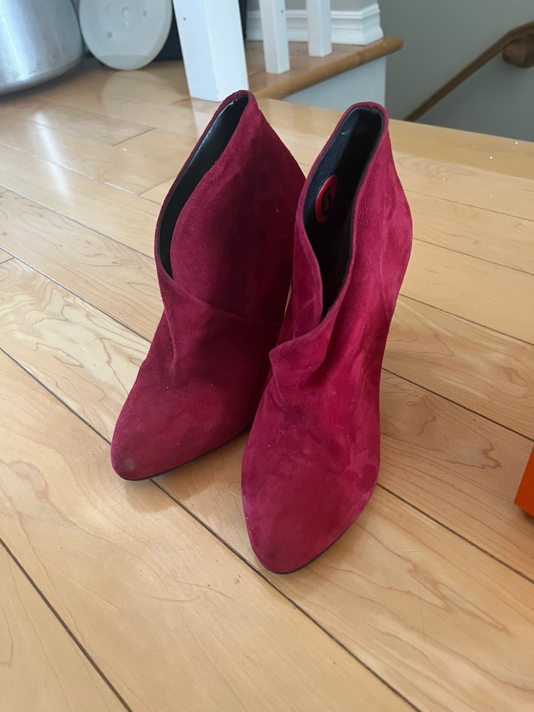 Women's size 36 red suede ankle boots. High heels. Made in Italy. Leather upper, man-made sole.