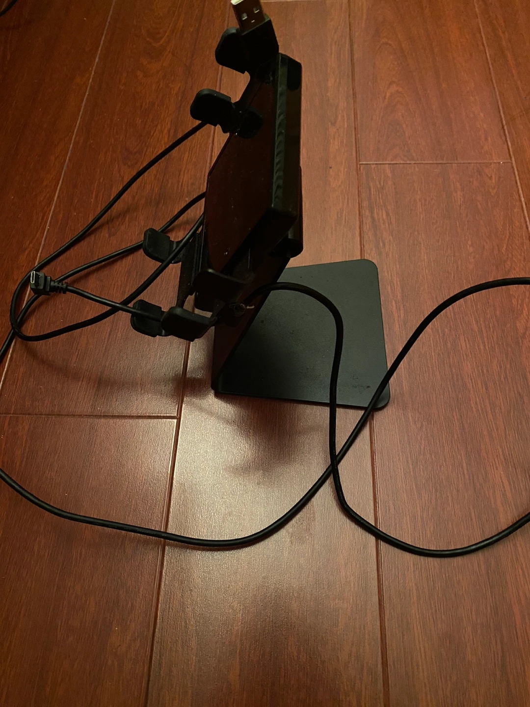 phone or mini iPad holder, metal,rotatable, Data cable is detachable ,Made in Taiwan.
