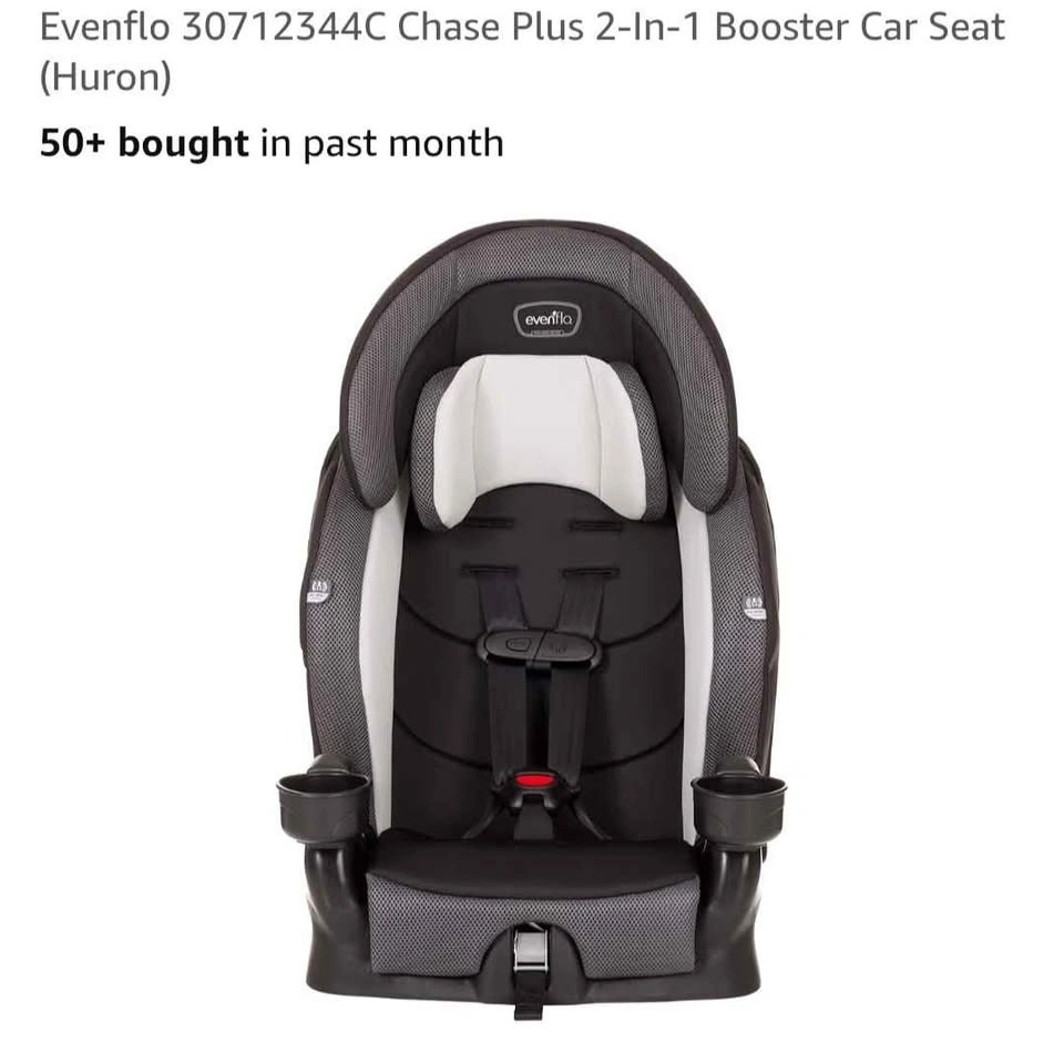 Evenflo Chase Plus 2-In-1 Booster Car Seat (Huron). Manufactured Sept 2024, expires April 16, 2030. Features forward-facing 5-point harness, converts to belt-positioning booster, dual cup holders. Lightweight and easy to install. Clean and in great condition. Never in an accident.