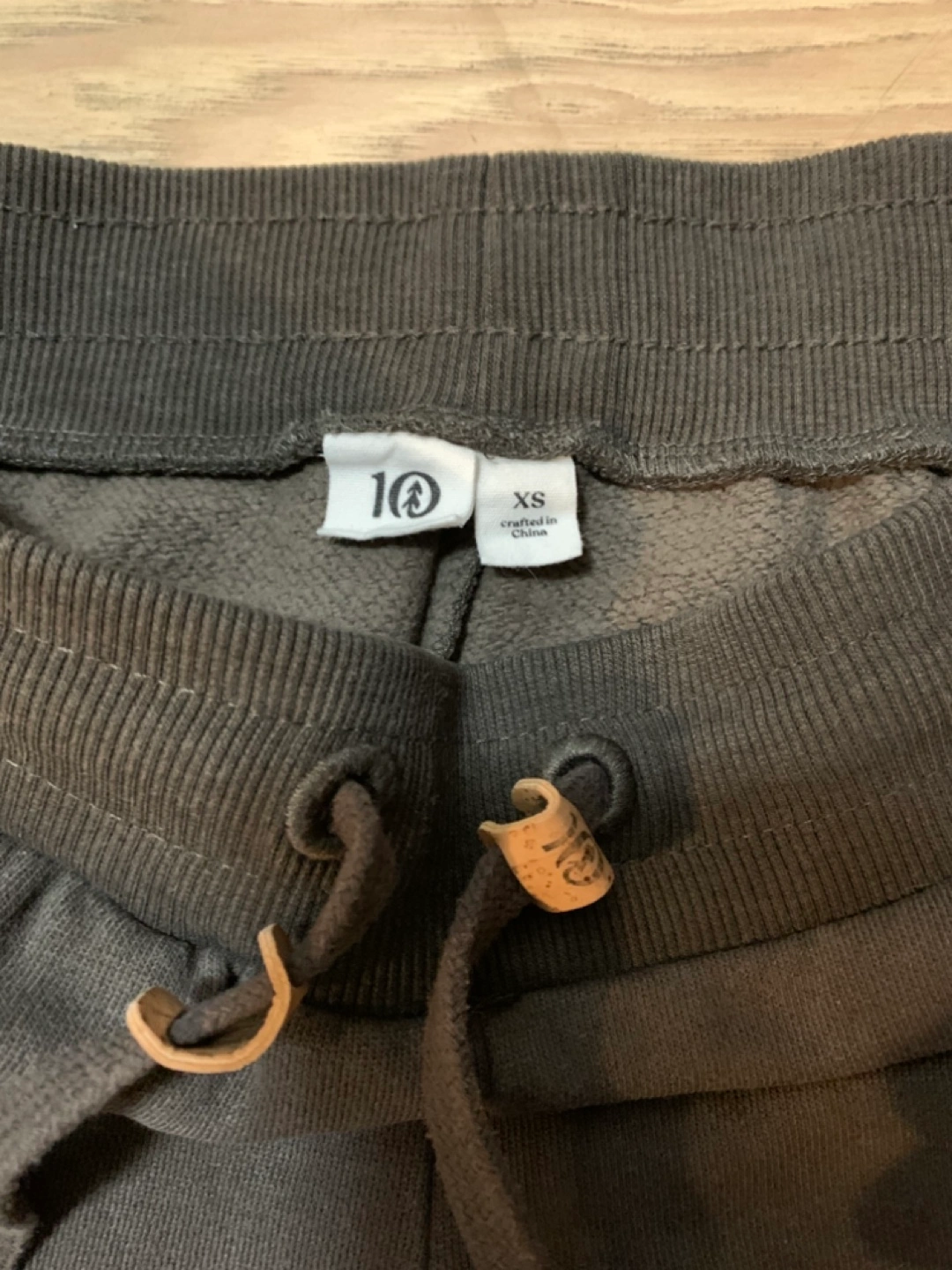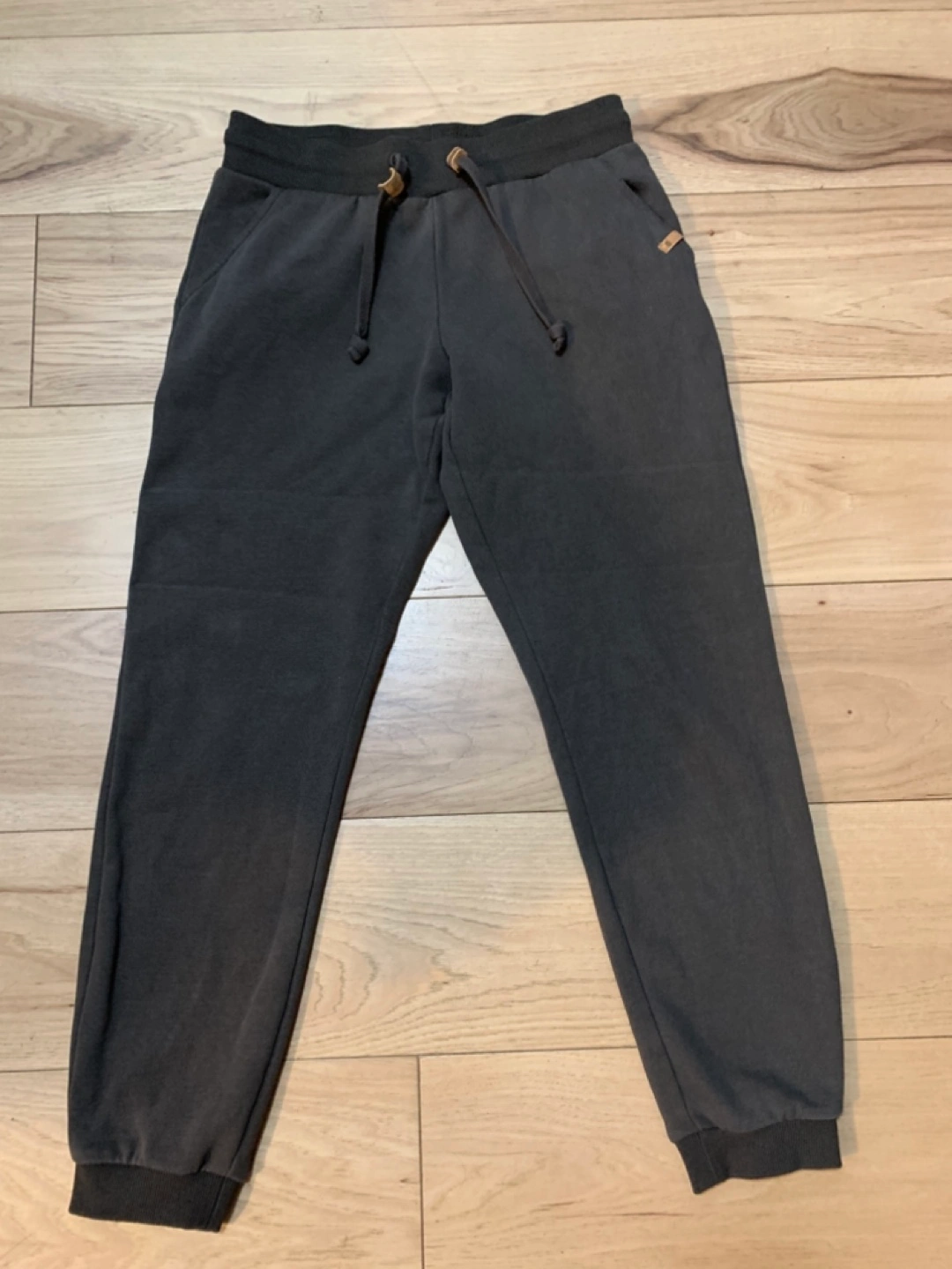 Women's dark grey joggers. Size XS. Drawstring waist. Side pockets. Cuffed hems.