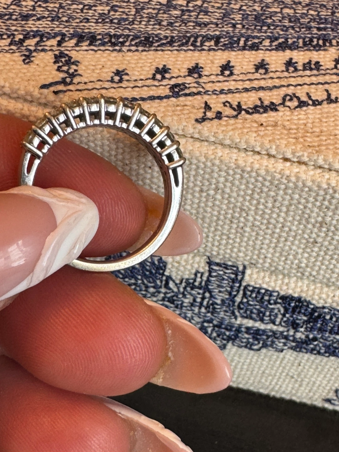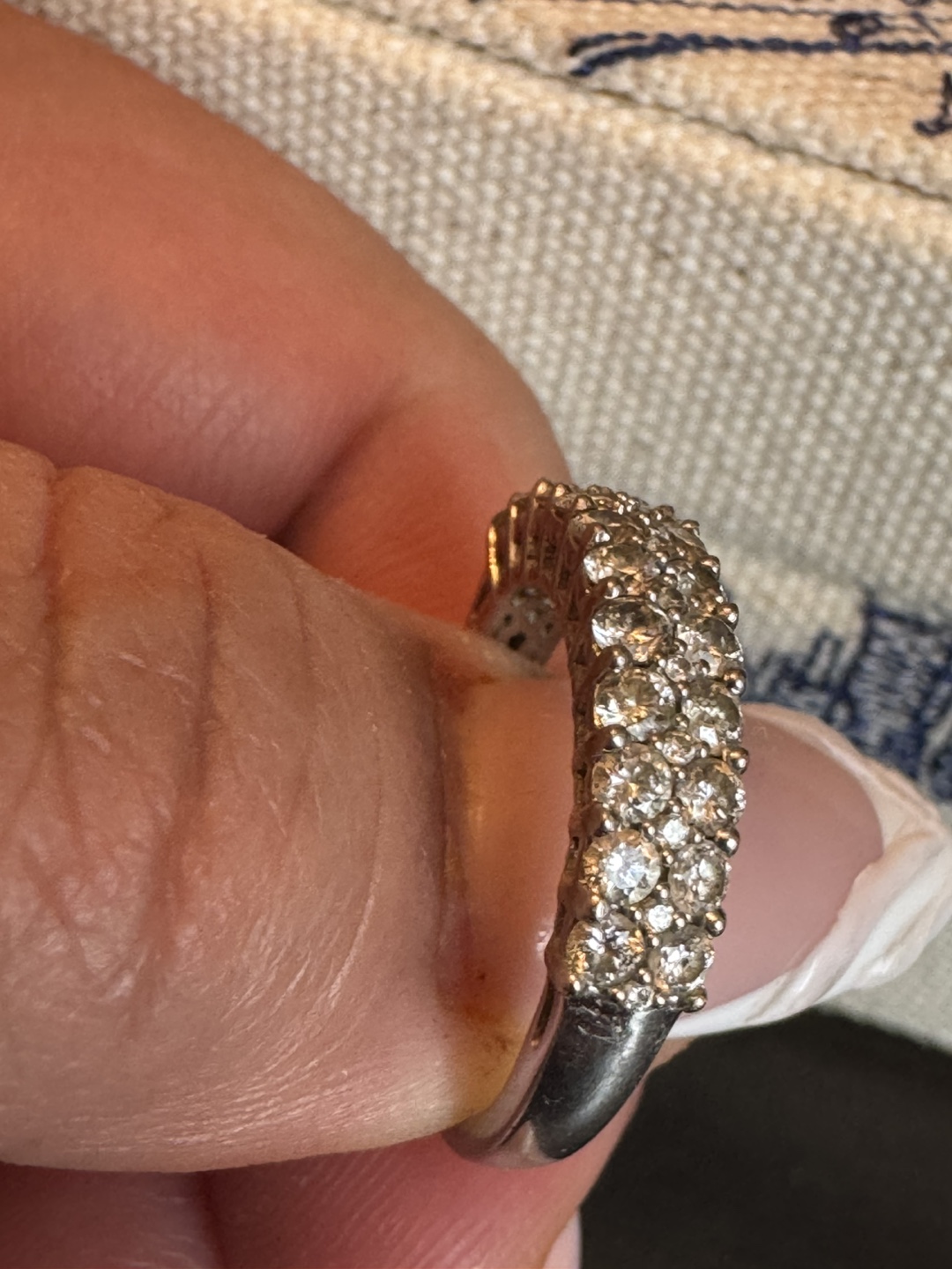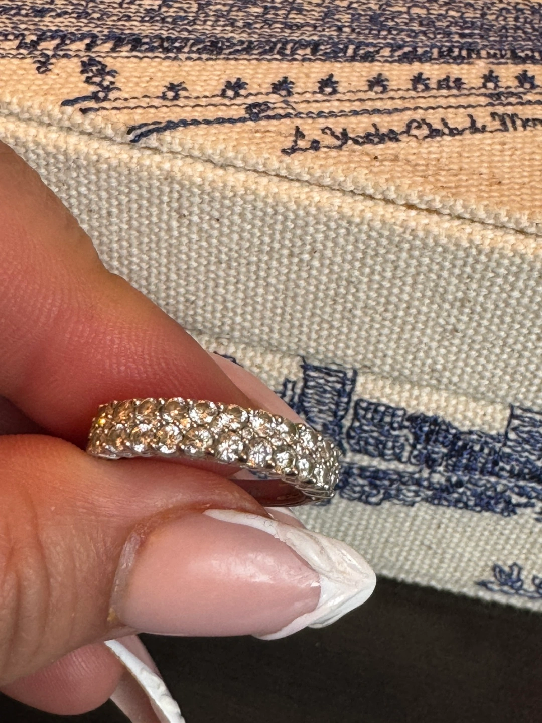 Beautiful double row diamond ring. Sparkly stones. Elegant design. Perfect for everyday wear or special occasions or wear as a wedding band. 1 ct total weight in 14 K white gold.
