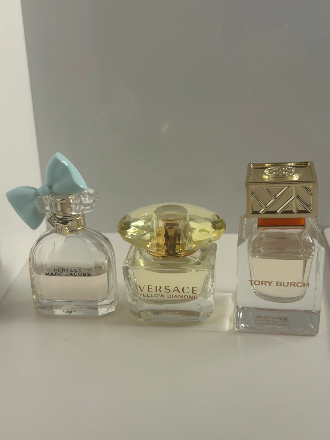 This is a bundle of 3 mini fragrances. The set includes Versace yellow diamond (full), Marc Jacobs perfect (half way full), and Tory Burch (full).