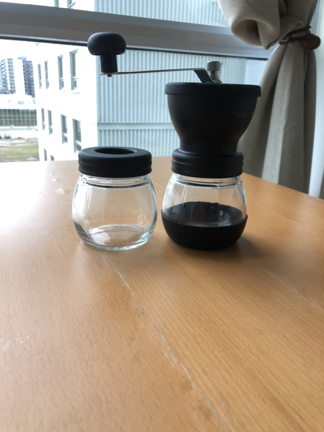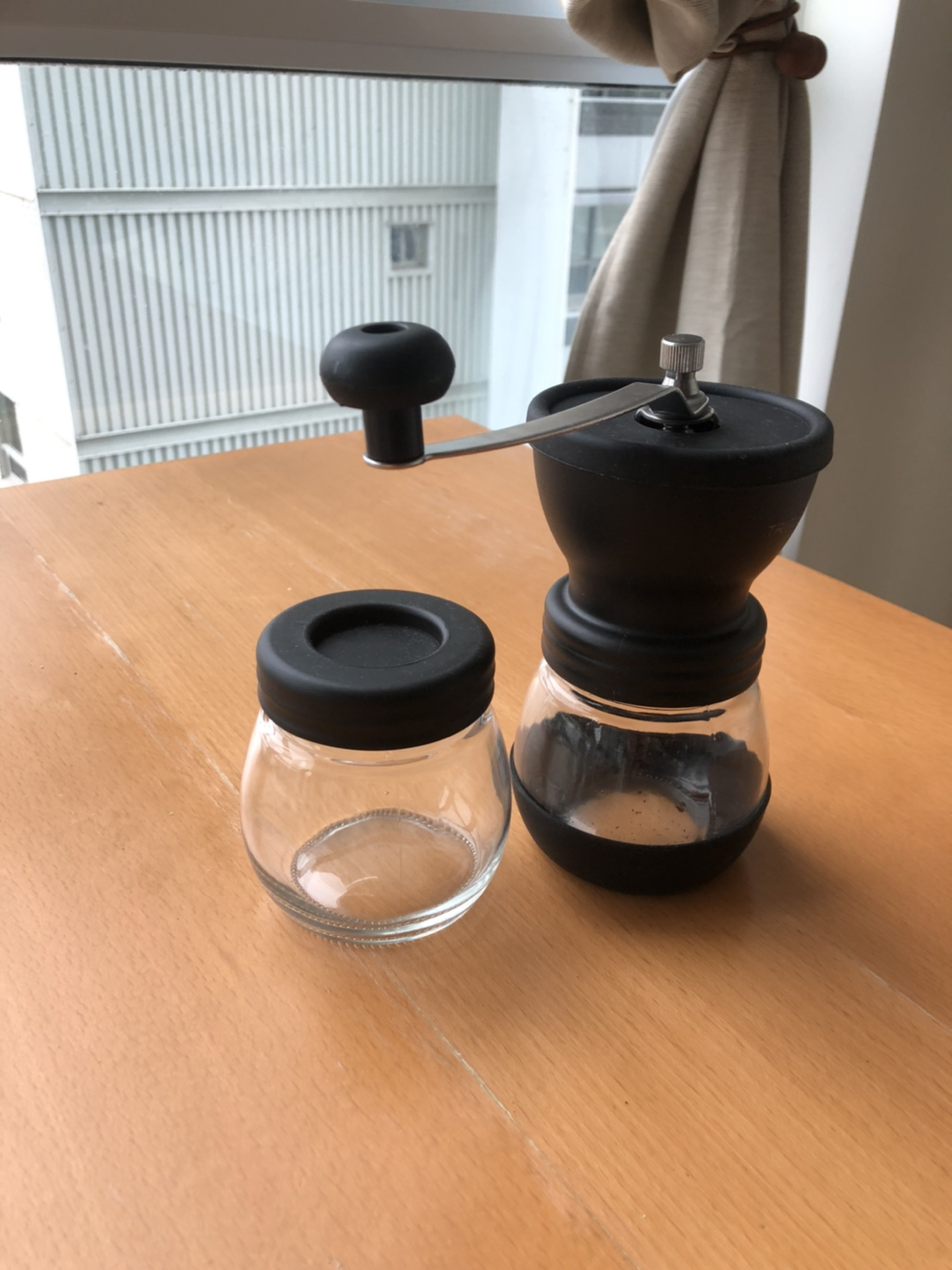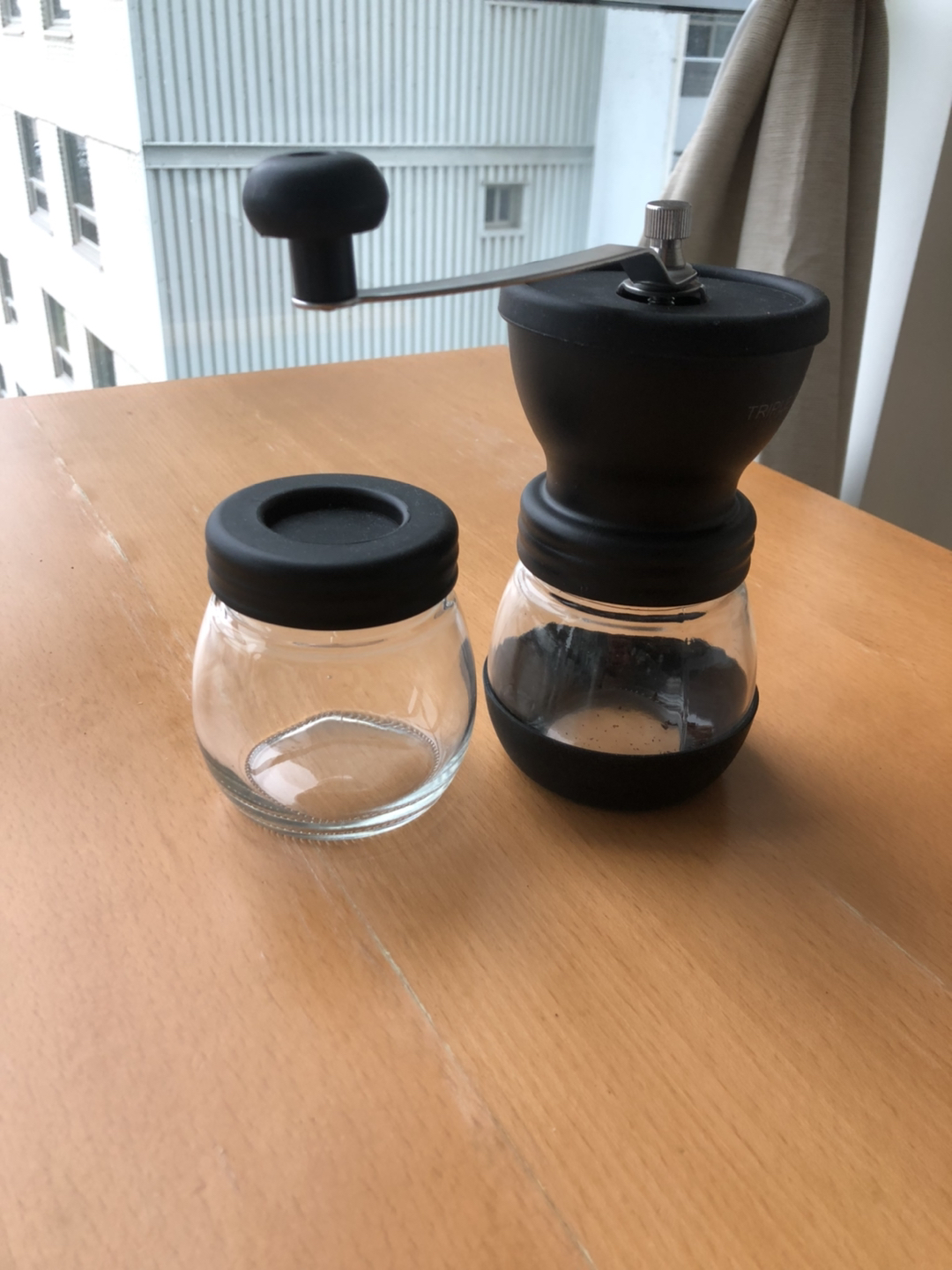 Hand coffee grinder with an additional cup Pitch up Yonge and Finch