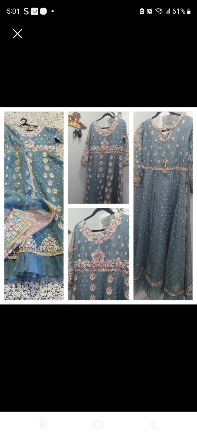 Beautiful teal shalwar kameez. Intricate embroidery. Features floral and geometric patterns. Comes with a matching dupatta. Flowy silhouette. Perfect for special occasions.