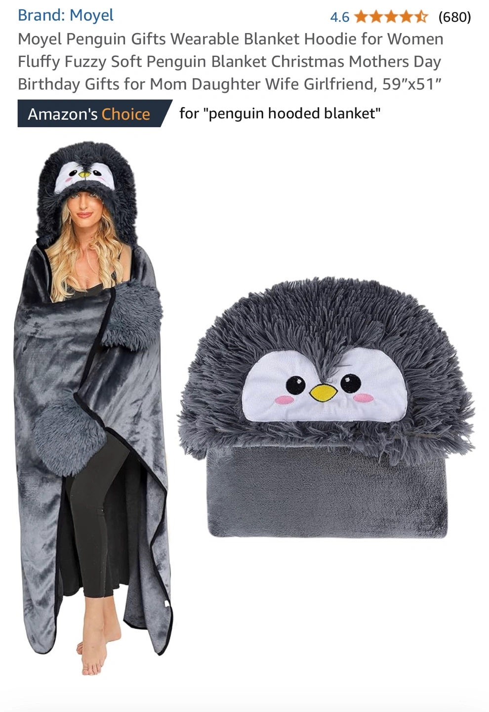 Penguin Hooded Blanket adult size