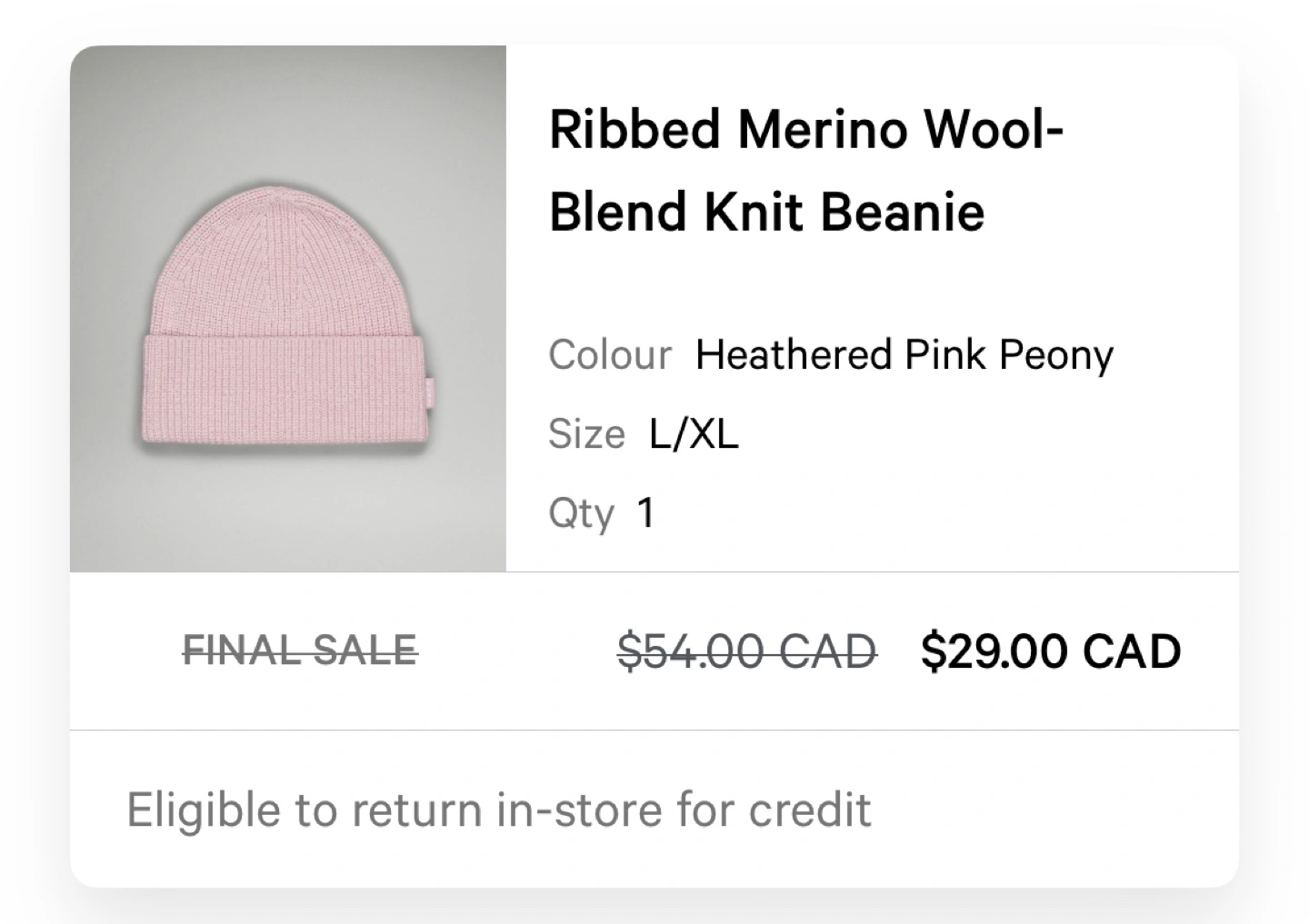 Bought it end of last winter, tried it on and thought it was good, so I took the tag off (was final sale anyway). Then this winter I tried on again but realized I actually prefer pompom beanies, also already have a few and just feel I don’t NEED this.