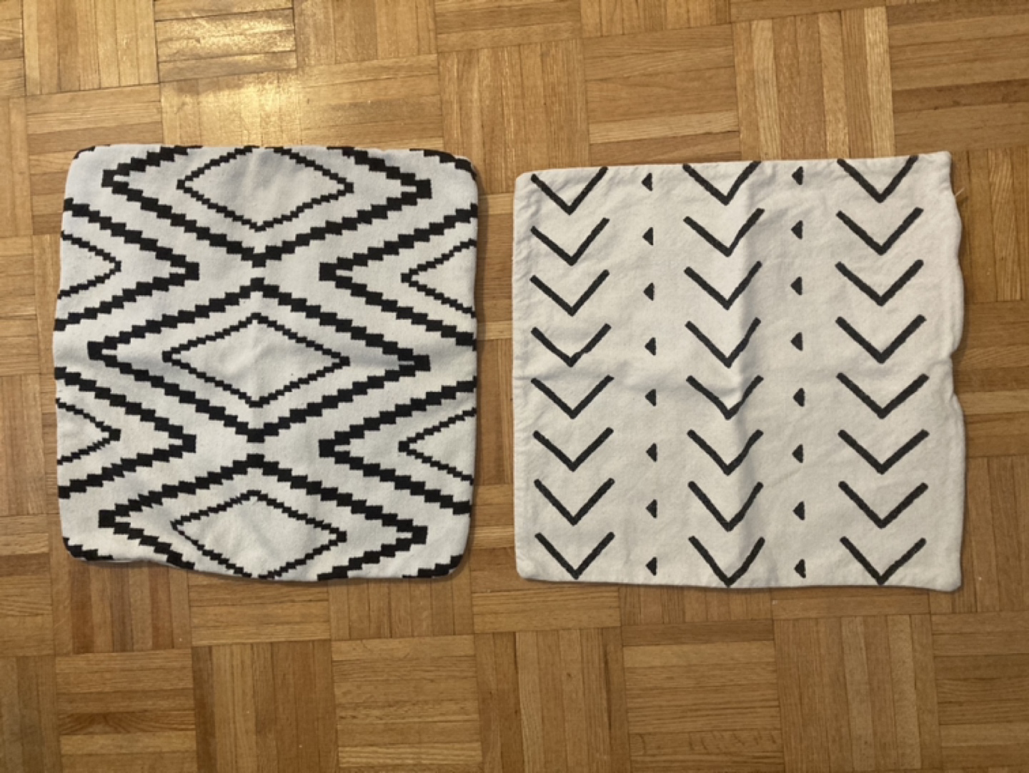 248Set of 2, standard size throw pillow cushion covers from H&M. Washed and ready to go! Pick up at Jarvis and Wellesley
