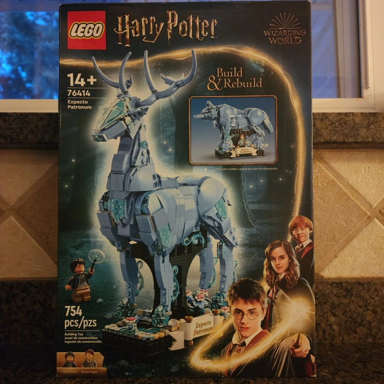 New sealed LEGO Harry Potter set. Buildable wolf and stag Patronus. 754 pieces. Ages 14+. Wizarding World.