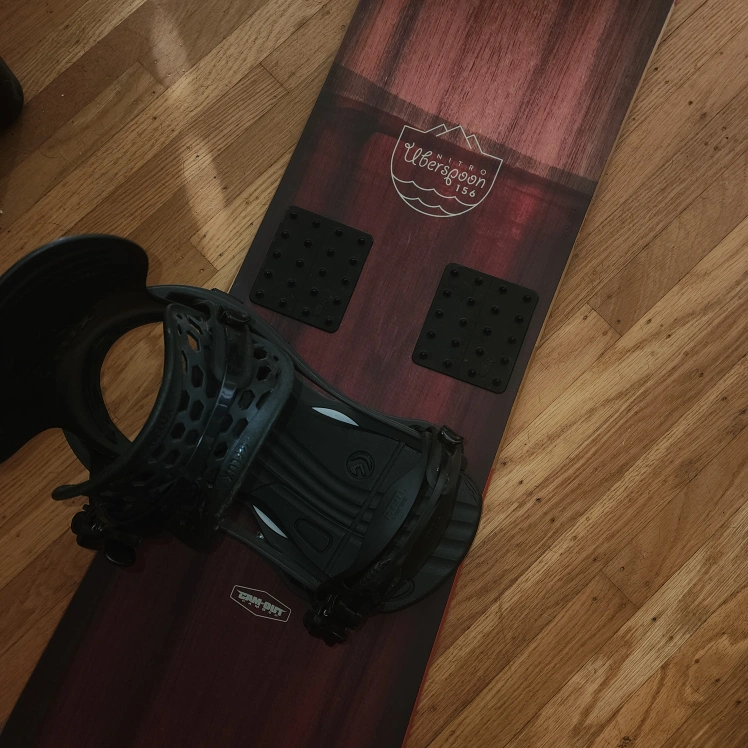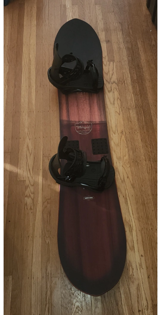 Good Snowboard and bindings. Uberspoon snowboard, size 156. Flux bindings. Good condition. Only a few minor scratches , used a few times last season. Solid board for new or skilled riders.