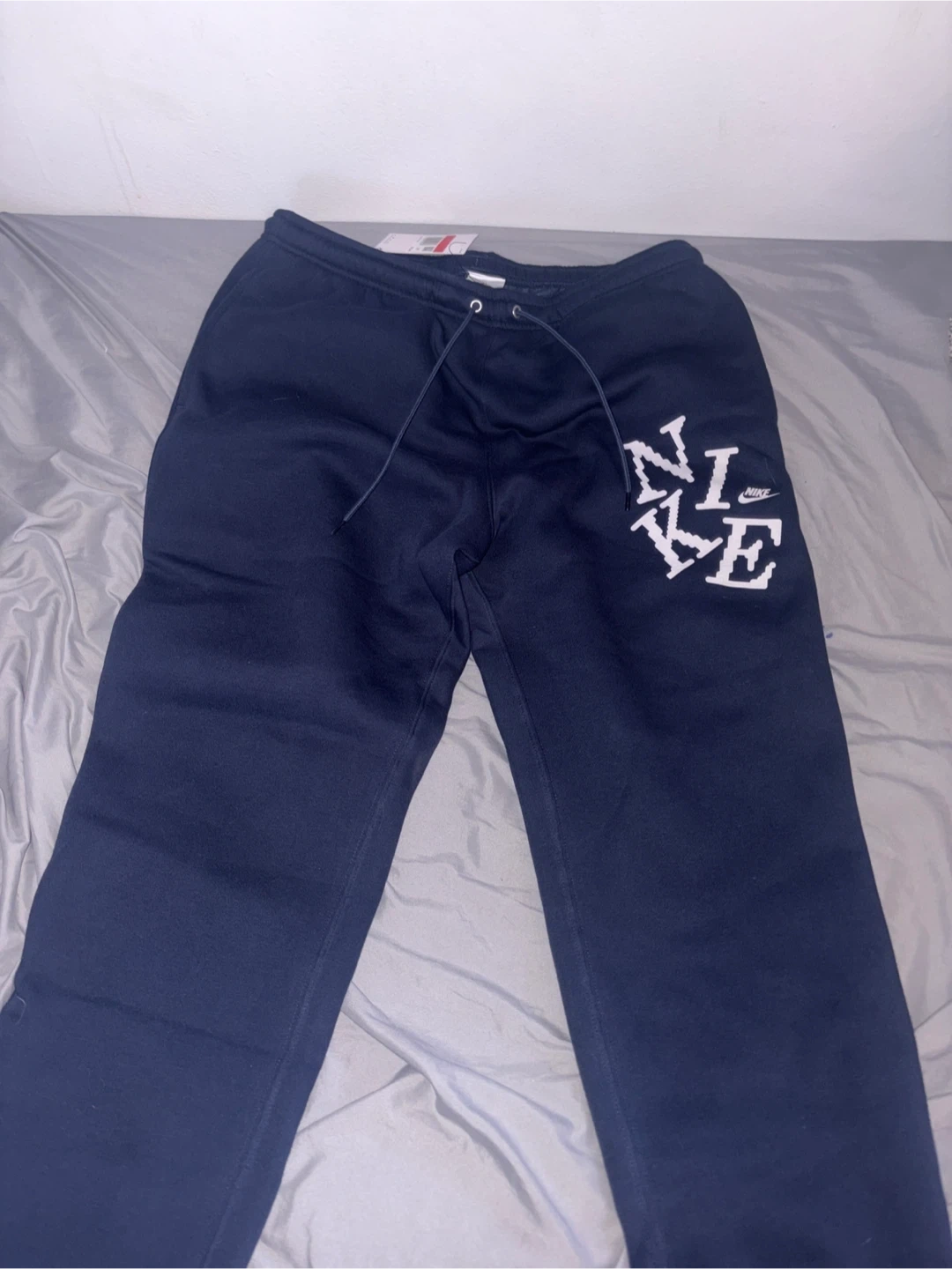 These are Nike men's sweatpants in a standard fit with a tapered leg and regular length. They're a navy blue color with a large 'NIKE' graphic on the side. BRAND NEW (pick up only)