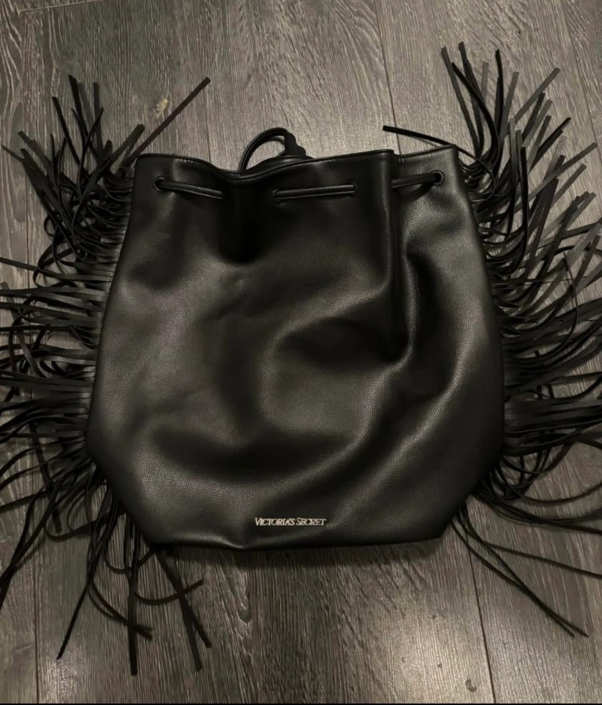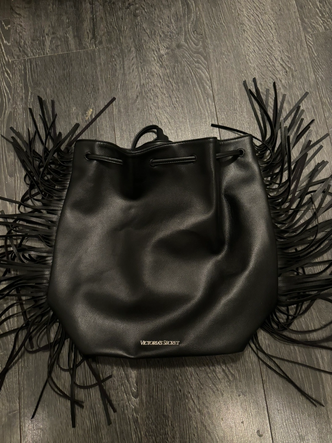 Victoria's Secret Black Fringe Drawstring Bucket Bag