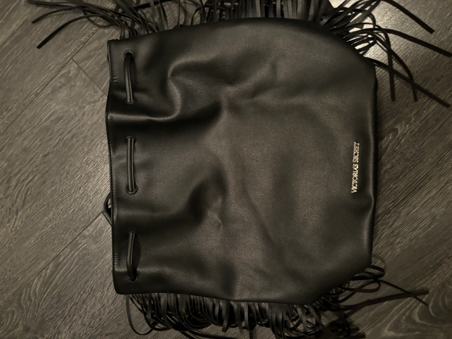 Victoria's Secret Black Fringe Drawstring Bucket Bag
