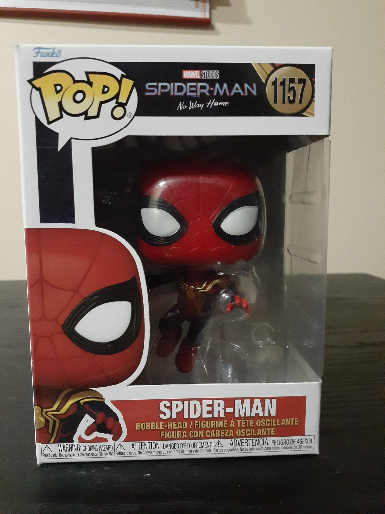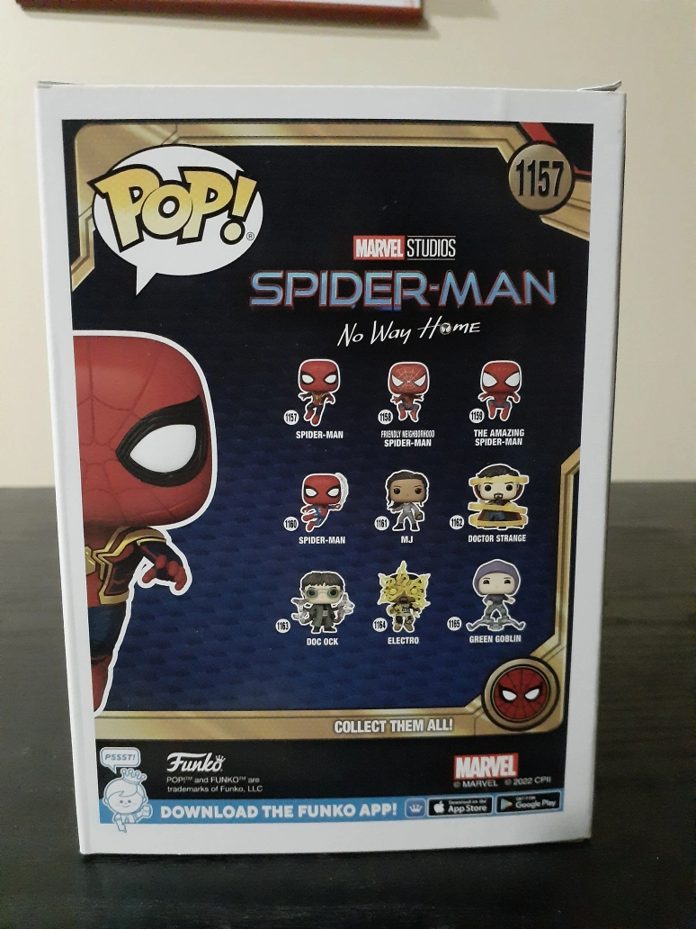 101Brand new Spider-Man Pop! Vinyl figure. Number 1157 in the collection. From Marvel Studios' No Way Home movie. Collectible item. Box shows minor wear.
