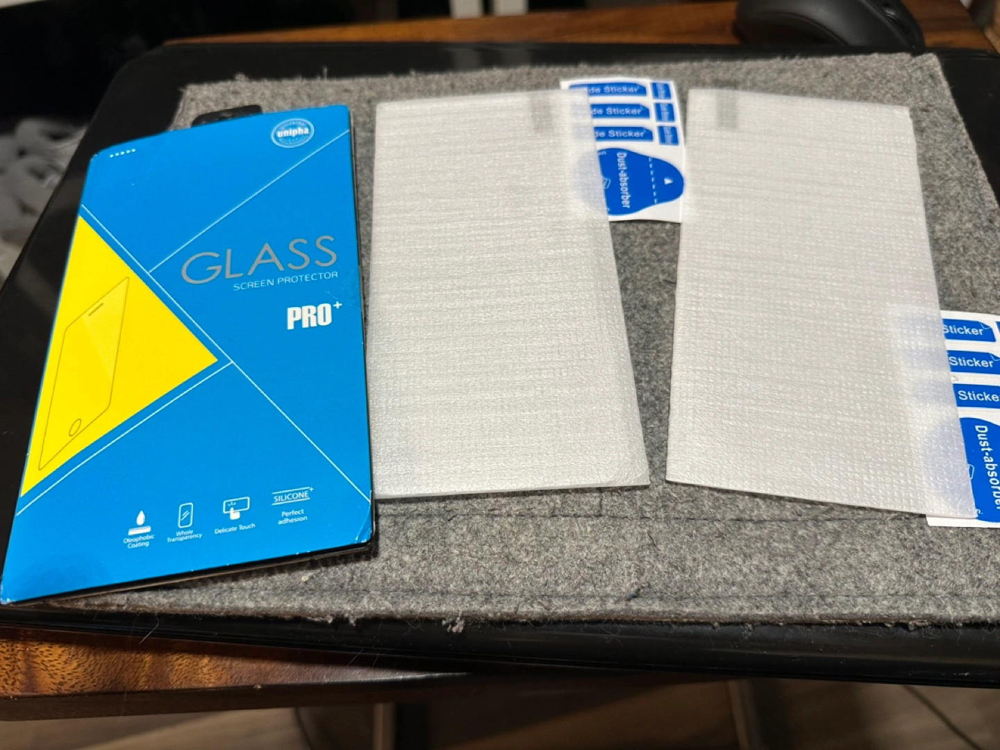 Two brand new screen protectors. Includes cleaning supplies. Premium quality tempered glass.