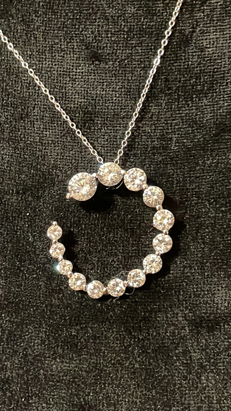 Retail price $129.00 Beautiful large crescent moon pendant necklace. Features sparkling cubic zirconia stones. 18” Long 925!silver stamped chain.