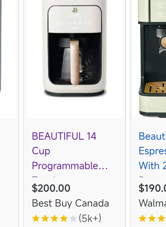Beautiful 14 Cup Programmable Touchscreen Coffee Maker by Drew Barrymore, Beau. 14 Cup Prog Coffee Maker. New in box. $200 at Best buy Yours for only $90