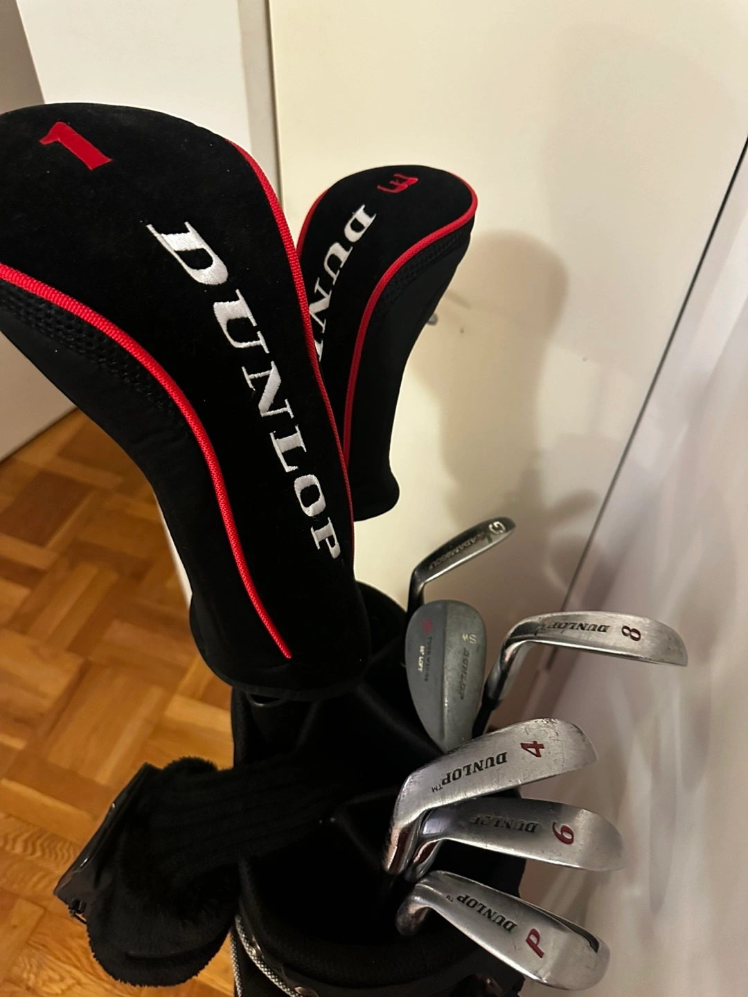 Pre-owned Dunlop golf club set. Includes irons, woods, and bag. Not a full set. Great for beginners or casual players. Clubs show some wear from use.
