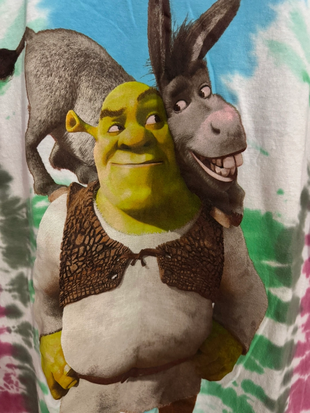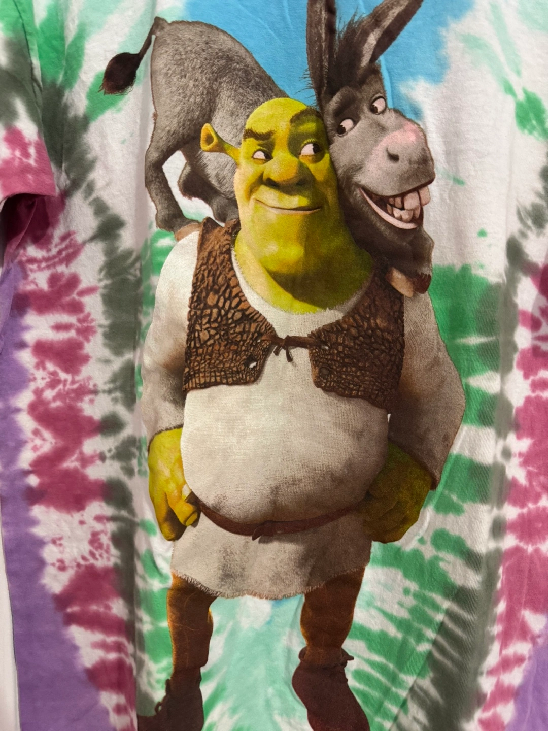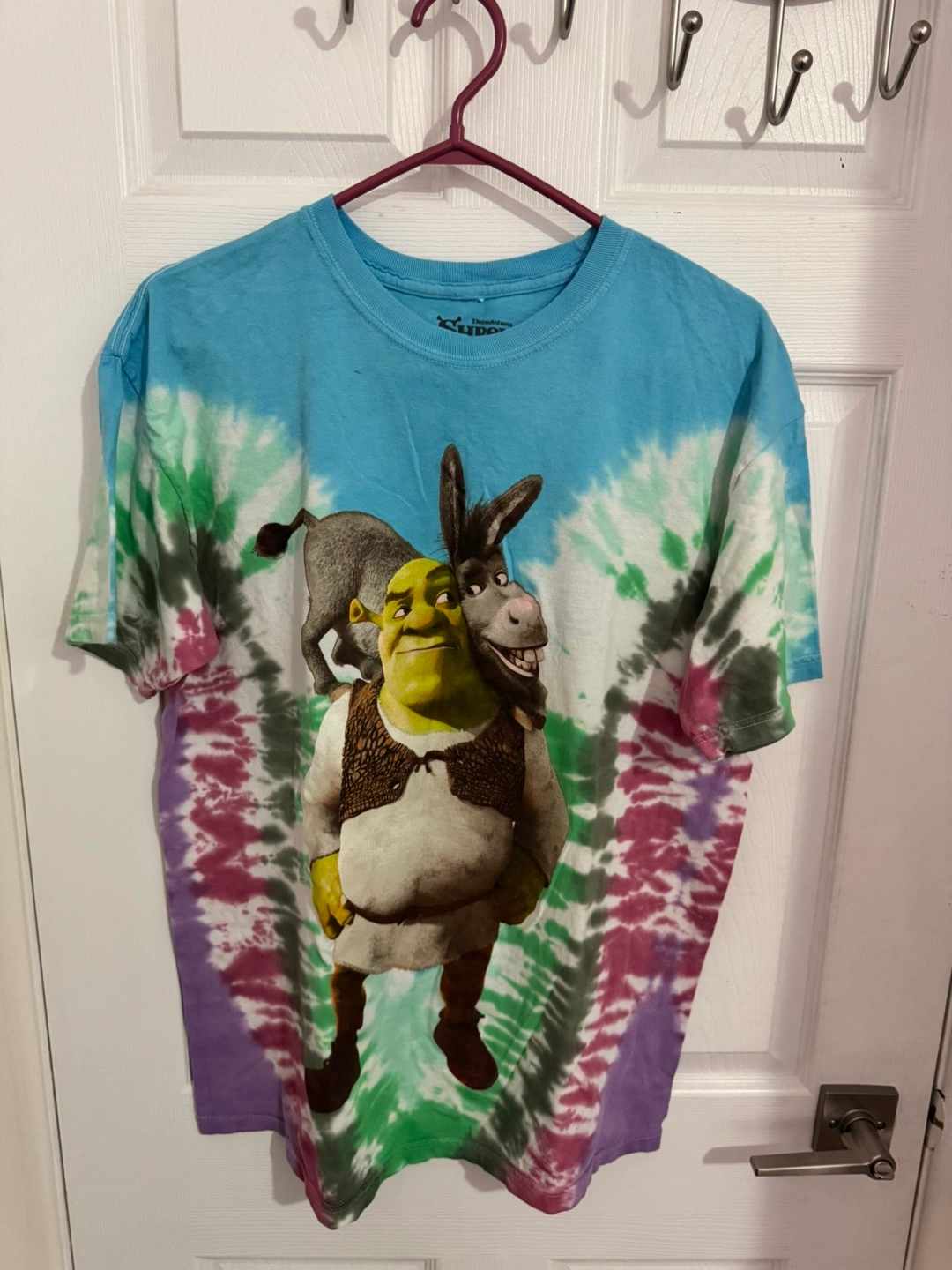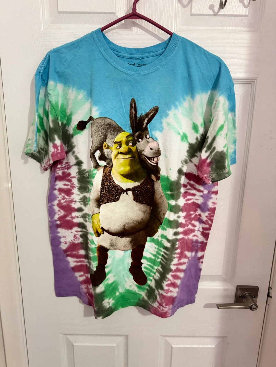360Large tie-dye shirt. Features Shrek and Donkey. 100% cotton. Made in Mexico. Shrek Besties Hug Rainbow Tie Dye (Large) Condition: excellent condition. No issue Price: 35 cad cash or best offer Location: 807 Brimley Road Scarborough (pick up location) Meet up: Line 1 or Line 2 subway or downtown Please see my other listing. Happy Shopping.