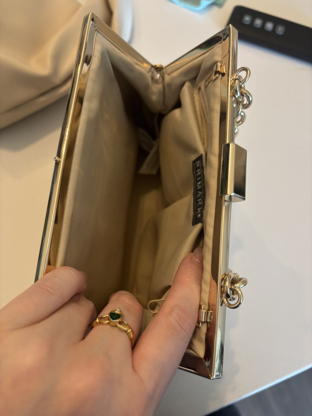 1 / 21 / 2Buy & SellBeige Primark Clutch BagBeige Primark Clutch Bag$8Elegant beige clutch. Gold-toned hardware. Chain strap. Pleated design. Small interior pocket. Pickup at Queen/ Spadina BrandPrimarkWHERE TO MEETOutside Cameron HouseView MapSELLERverifiedLorraineKensington Market29818 reviews0 chats·0 favorites·15 viewsSEND CHAT TO SELLERHi Lorraine! I’m interested in your listing.Hi Lorraine! I’m interested in your listing.Get the Karrot app to chatSign In to chat
