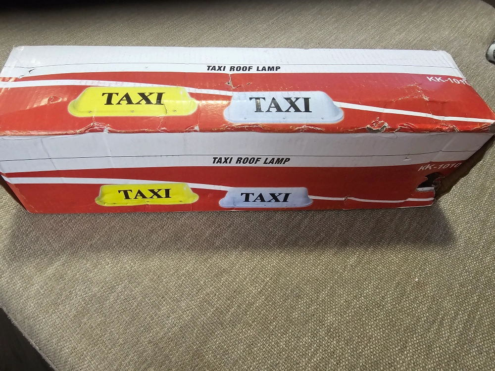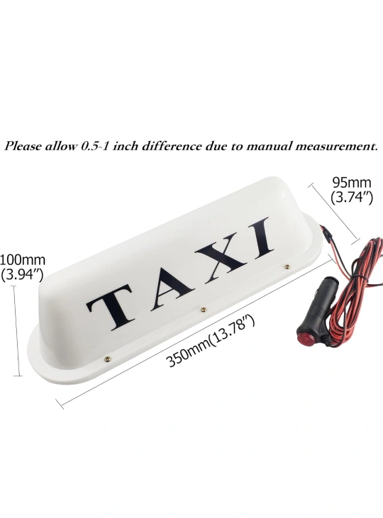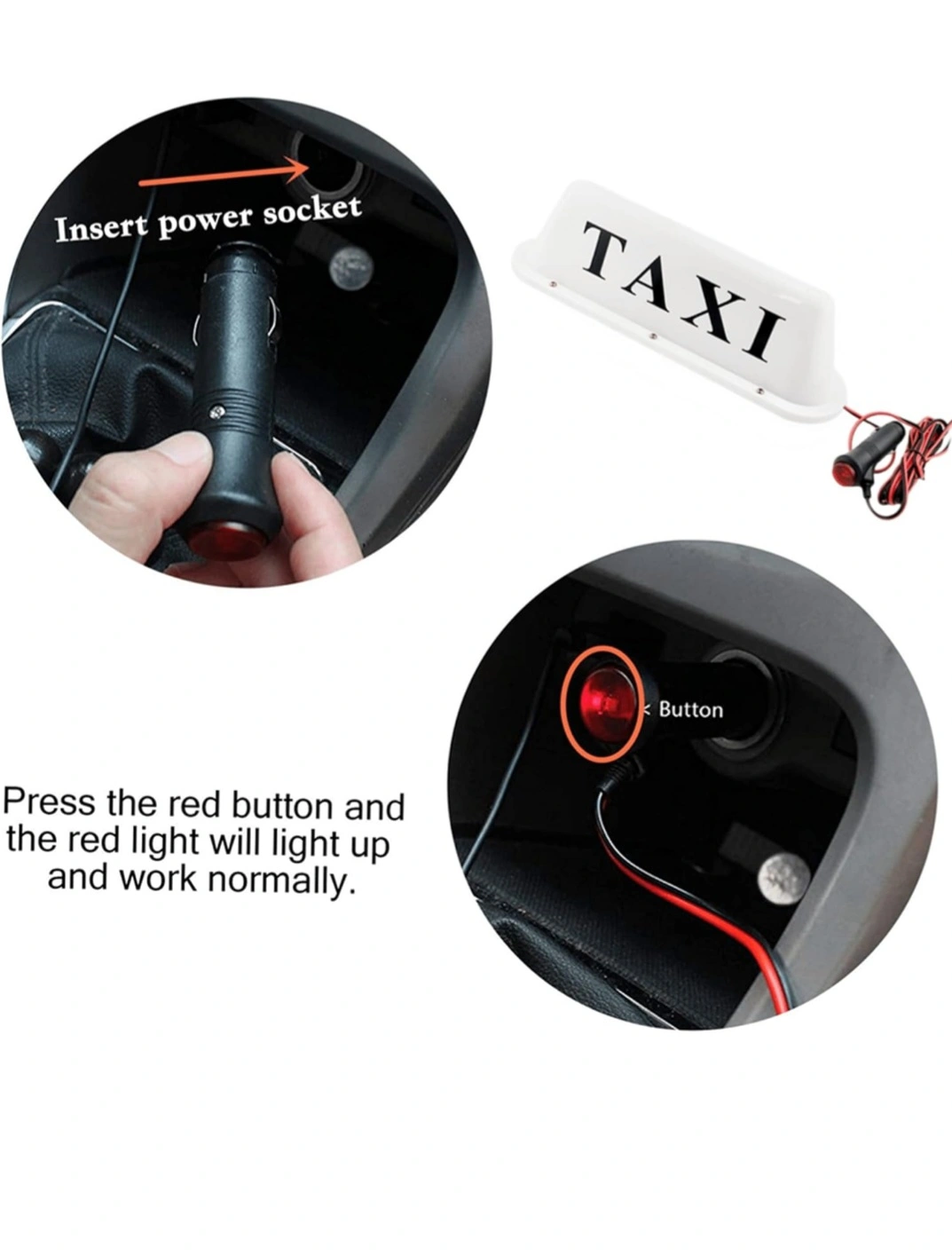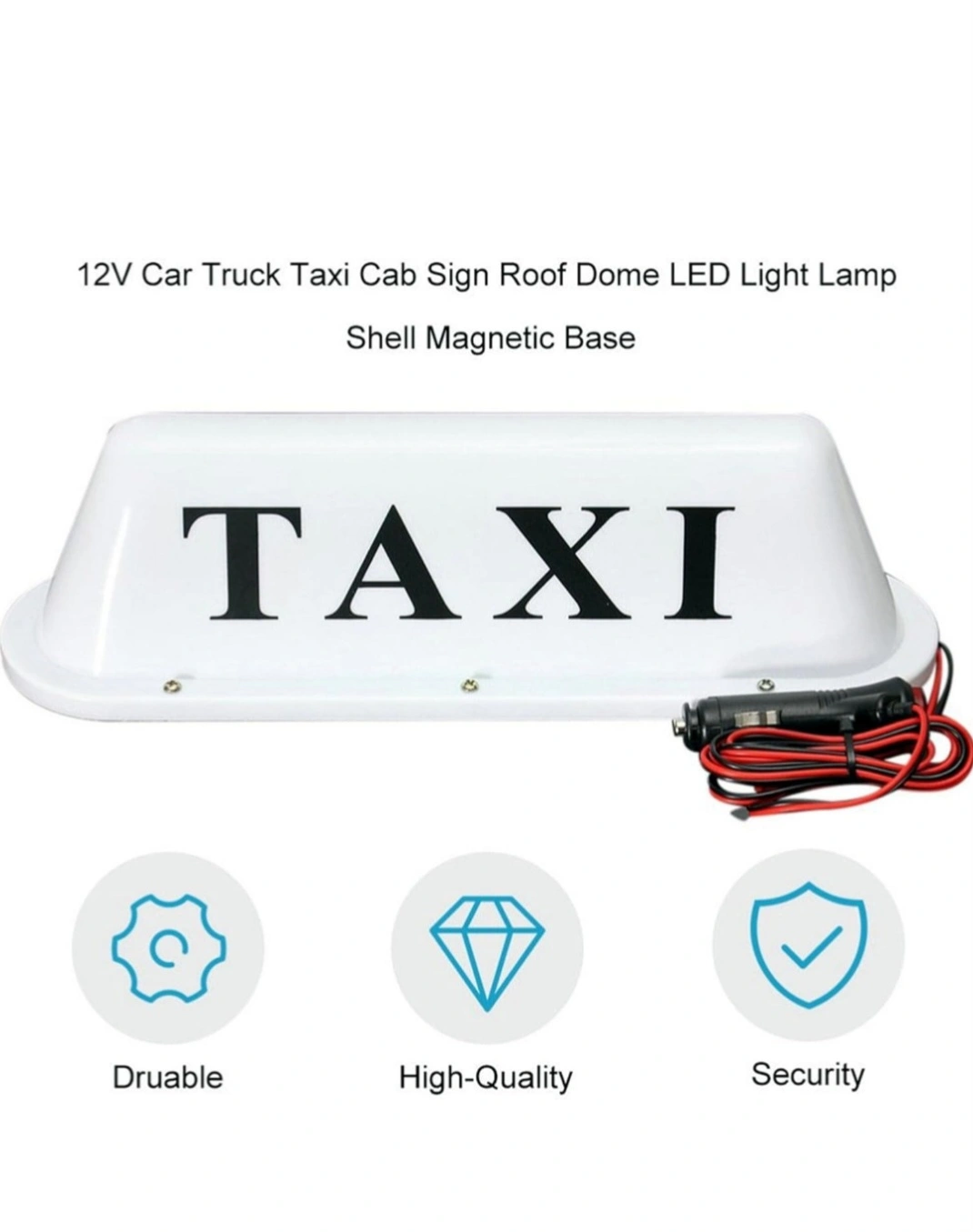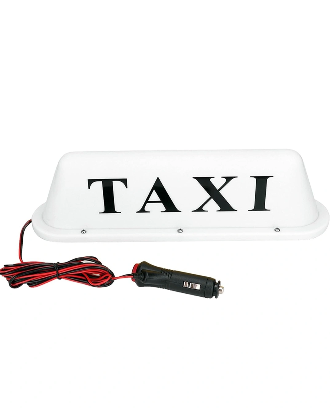White LED taxi sign. 12V car/truck light. Magnetic base. Includes cigarette lighter plug. Durable and high-quality.