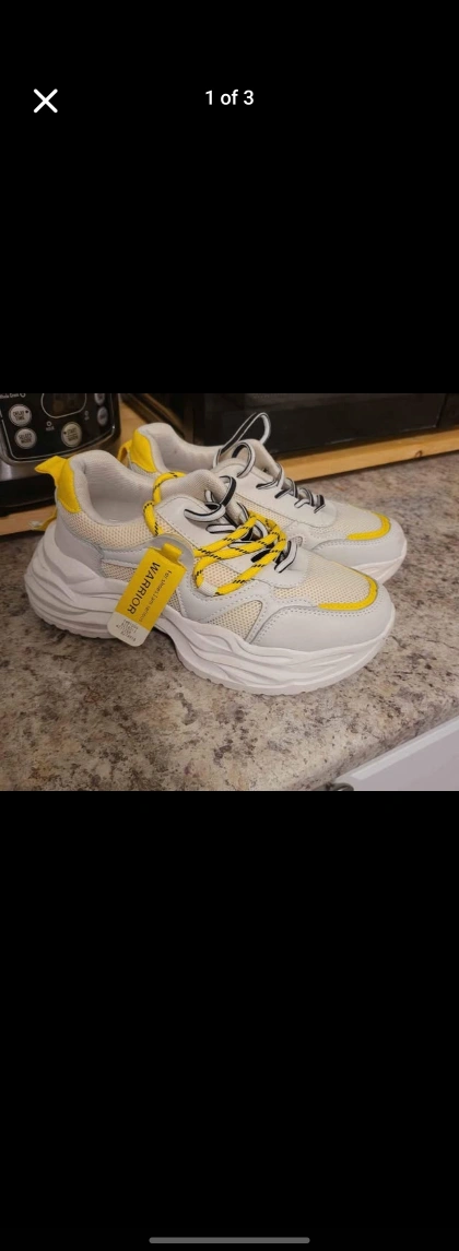 Cute platform sneakers. White and yellow colour scheme. Great for everyday wear. New with tags.